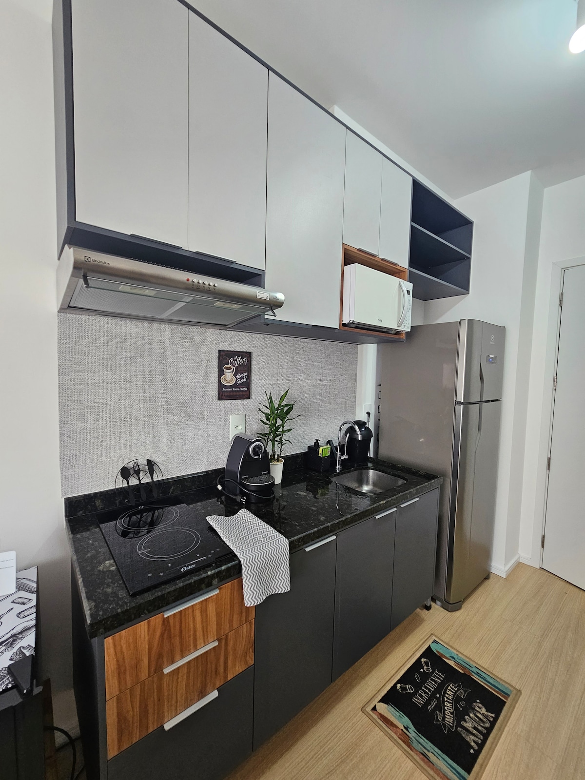 Relájese en este espacio tranquilo y elegante. Preparado con mucho amor y cariño para que te sientas como en casa. Piso nuevo con la ubicación perfecta, solo cruza la calle y estarás en la estación de metro Butantã, además de contar con restaurantes, pizzerías, farmacias, parada de taxi y mucho más. Tenemos una cama doble, cortina con blackout en la sala y dormitorio, Smart TV, cafetera, freidora de aire, juego de cama, toallas, microondas, cocina, mesa de comedor y trabajo, aire acondicionado.