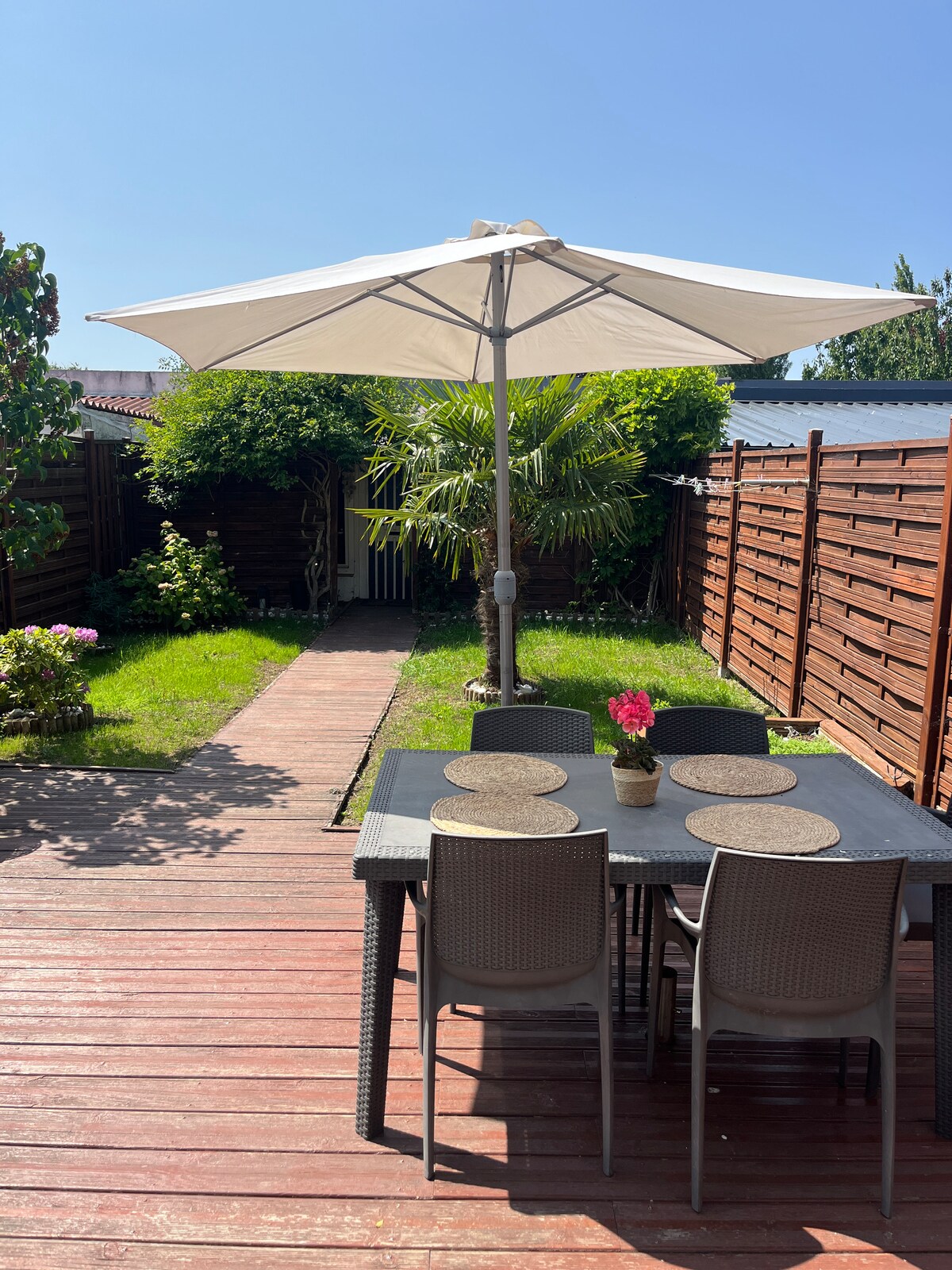 ¡Encantadora casa en Dunkerque! Disfrute de dos cómodas habitaciones con camas de la marca EMMA y un sofá cama. La cocina está totalmente equipada (lavadora y secadora). La sala de estar dispone de TV y acceso a Internet. Disfrute del patio orientado al sur con muebles de jardín y barbacoa. El baño está equipado con ducha y inodoro Nuestra casita está idealmente situada en un callejón sin salida tranquilo, cerca de la playa, la plaza Jean Bart y las tiendas.