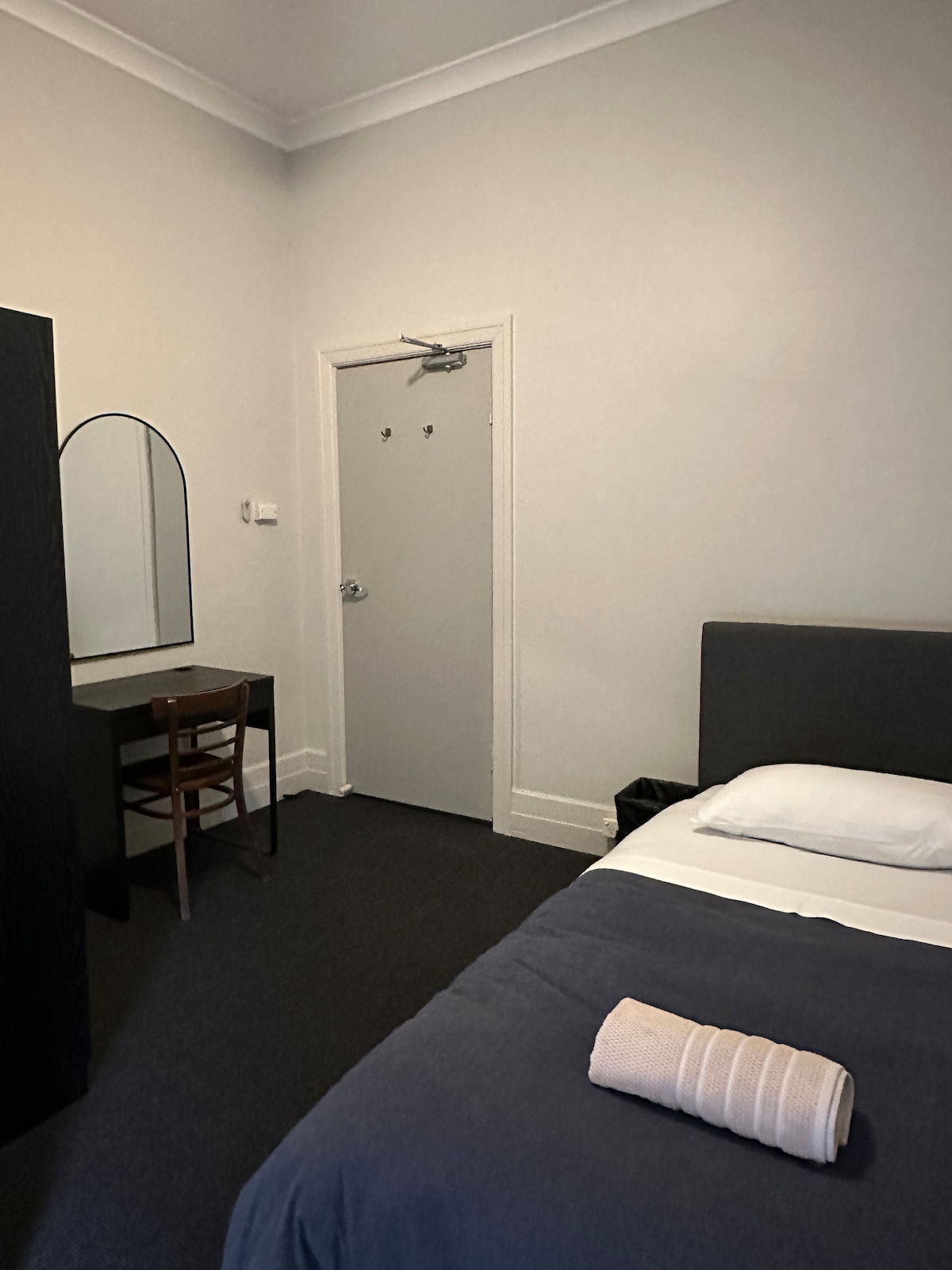 Stay in a freshly renovated, private lockable room just 1 min from Waterloo Metro and 3 min to Redfern Station. Waterloo metro takes you directly to Central station in just 2 minutes, making city access quick and easy. Step outside to discover Sydney’s vibrant cafe and pub scene right on your doorstep. Inside, enjoy daily cleaned shared private bathrooms, a fully equiped kitchen, fresh towels, complimentary soaps and water, plus an exclusive hotel discount at our relaxed bistro