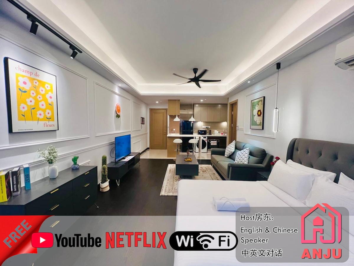 Bienvenido a la SERIE de suites THEELEGANCE l, en el corazón de Johor Bahru R&F Princess Cove. Ofrecemos una elegante unidad de estudio para tu comodidad y comodidades bien pensadas. Excelente ubicación: A 3 minutos en coche de JB Central, a 5 minutos de Bazaar Karat, KomtarJBCC, Danga Bay Beach. A 10 minutos del centro comercial KSL City Mall, a 11 minutos de Midvalley, a 20 minutos de Legoland, a 30 minutos de JPO y del aeropuerto Sinaí. Convenientemente ubicado cerca: A 1 minuto a pie de Fuli Shopping Plaza, Jaya Grocer y 7-11, a 5 minutos a pie de CIQ directamente a Singapur, a 10 minutos a pie de KomtarJBCC y City Square. Se proporcionan suministros bien pensados Toallas, champú, ducha y acondicionador. Descripción DE las instalaciones: Cama tamaño king, TV Netflix, estacionamiento gratuito, lavadora, cocina de inducción. Recordatorio: 30 RM por persona de la tercera persona, incluidos juegos de cama y toallas, gracias por tu comprensión y cooperación. ¡La serie de suites Elegance l se compromete a proporcionar una estancia única tanto para que los viajeros de negocios como de placer reserven ahora y disfruten del viaje a Johor Bahru!