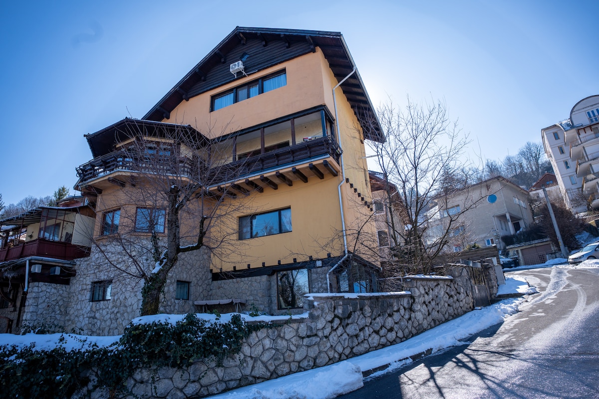 Déjese transportar a los días pasados en nuestro ático tradicional sajón cuidadosamente restaurado y disfrute de una vista perfecta del monte Tampa y los tejados vecinos en un lugar único lleno de carácter y romance. Tendrás una auténtica experiencia local alojándote en la casa de huéspedes privada de nuestra familia que está justo en el corazón de la ciudad en uno de los magníficos edificios históricos de Brasov. También incluye: estacionamiento gratuito en las instalaciones, barra de desayuno, amplio salón con terraza en la azotea y gimnasio privado.