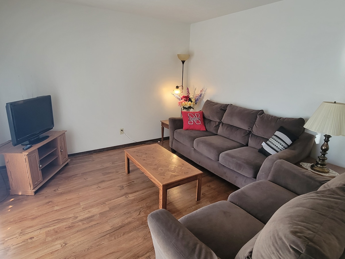 Enjoy easy access to everything from this perfectly located home base. Right of I-80, and only a 6 min drive to the Historic Haymarket, Memorial Stadium and Pinnacle Bank Arena. The apartment is located within a small, quiet and secured apartment complex of only 24 units. There's a courtyard for you to use to enjoy a meal, or read a book outside. Behind the complex is a Disc Golf Course and we'll have some disc's available for you to use while visiting.