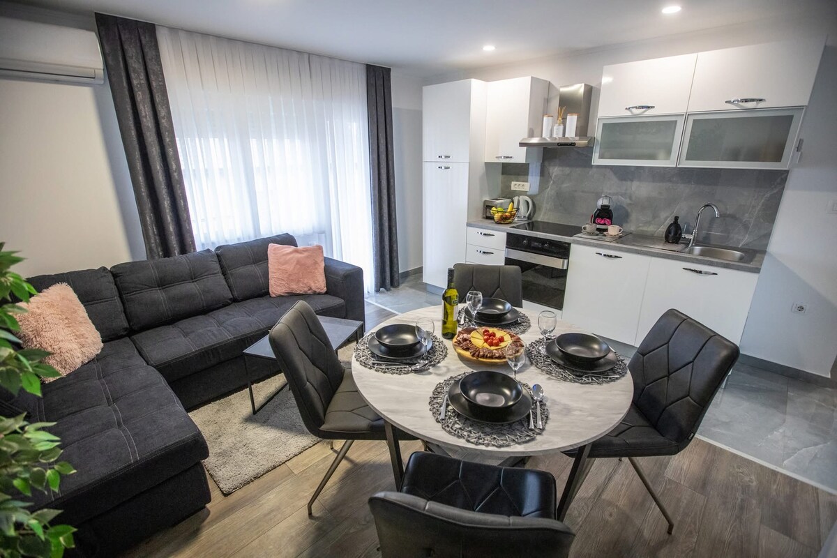 El departamento Hope tiene un departamento entero de 120 m2 y se encuentra en el centro de la ciudad. El alojamiento es para 7 personas. Hay 2 unidades de alojamiento idénticas dentro de una casa privada (2 apartamentos), por lo que es posible un gran grupo de 15 personas. También hay un gran patio con barbacoa y aparcamiento gratuito. El departamento está ubicado en el primer piso y tiene su propio balcón espacioso con vistas al jardín y a la montaña Klek. El restaurante más cercano está a 300 metros del apartamento y la tienda más cercana está a 30 metros.