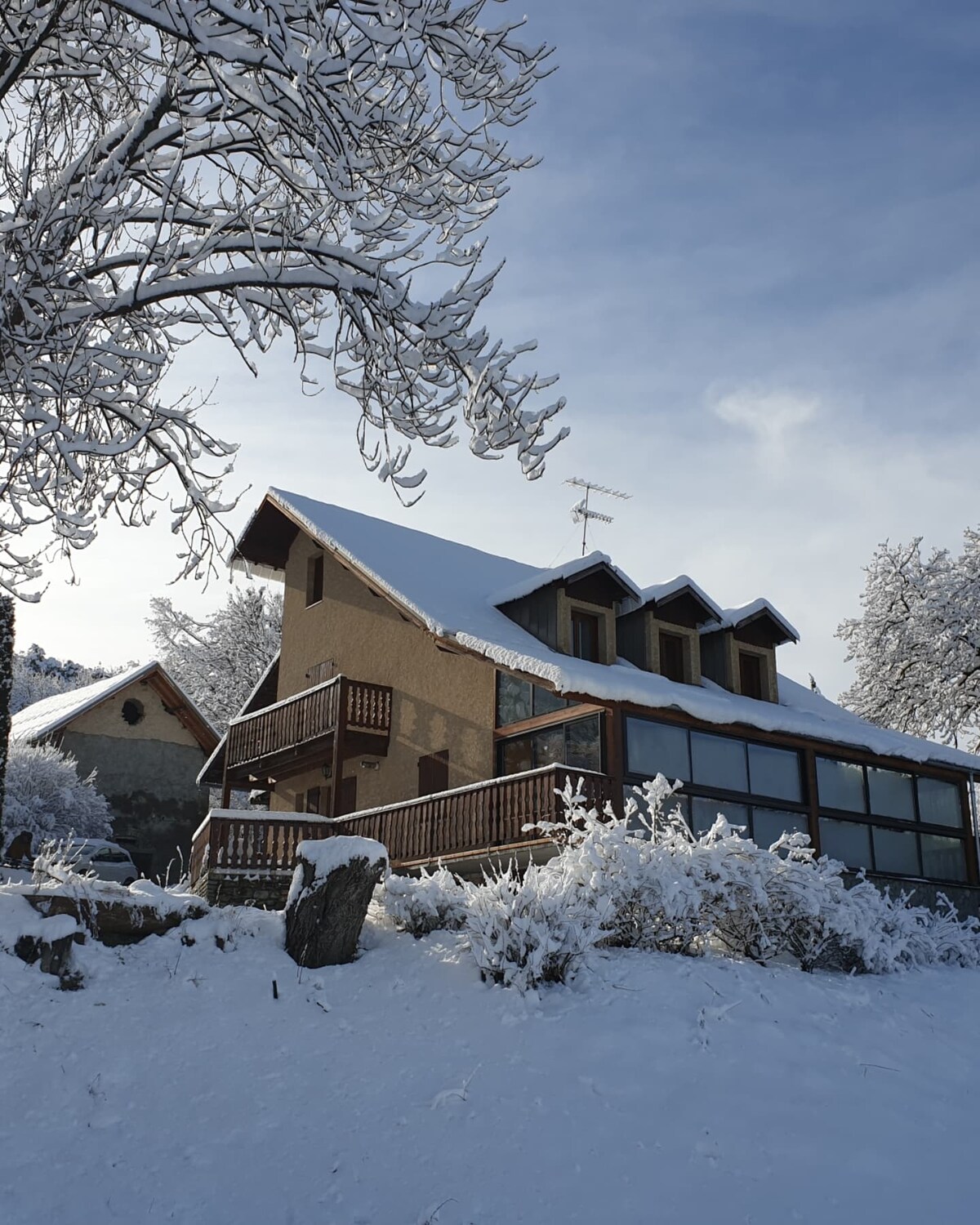 Ubicada a 1250 m, en una granja del siglo XVIII completamente renovada con hermosas prestaciones (sauna y baño nórdico privados). La casa rural «Les Dourioux» es un remanso de paz, espacioso y acogedor. A 10 minutos de la Draye (esquí de fondo, raquetas de nieve, perros de trineo), a 35 minutos de las estaciones: Les Orres, Crevoux, Réallon. Senderismo en verano e invierno desde la casa. Un lugar a la vez en plena naturaleza, pero cerca de los servicios de la ciudad de Embrun y el lago de Serre-Ponçon (a 10 minutos), para descubrir las actividades náuticas.