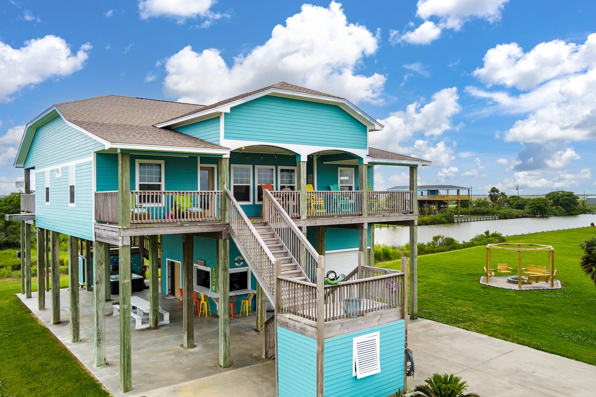 “Sweet Summertime” is a newly built (June 2021) 3/2 beachside bungalow in the Lafitte’s Landing subdivision in Crystal Beach. Private community beach access is a quick 5 minute walk from the house. Bring your golf cart or rent one and use the cart path to drive right onto the beach! 3 king bedrooms make this home perfect for 3 couples or 1-2 families. Great outdoor space for entertaining with a hot tub, lots of seating, grill, fish cleaning station and an outdoor shower!
