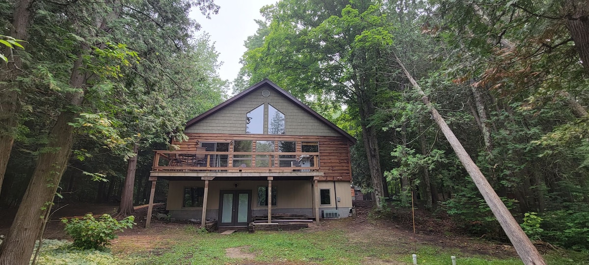 Disfruta del ambiente acogedor de este chalet con estructura de madera enclavado en 80 acres tranquilos en Benzonia, Míchigan. Ubicado en el corazón de la belleza del norte de Míchigan, disfruta de estar rodeado de naturaleza en el chalet y desconecta de verdad, ya que esta propiedad NO tiene wifi. Una oportunidad para escapar sin dejar de estar a poca distancia en coche de Frankfort, Crystal Mountain, Sleeping Bear y Traverse City. ¡Un lugar perfecto para retirarse o una base de operaciones para el espíritu aventurero!