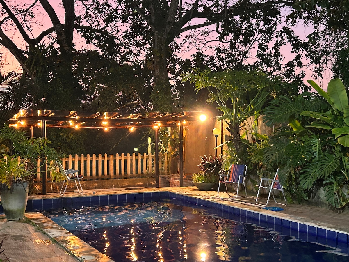 A Casa Urucum está localizada num pedacinho da mata atlântica. Na frente é murada e atrás tem cerca para a segurança dos seus pets. Venha curtir a natureza junto com os seus filhos de quatro patas. A casa foi construída pelas nossas próprias mãos e hoje abrimos as portas para vocês poderem experimentar uma vivência numa casa de superadobe, super ventilada, saudável, circular e com muita parede de barro.