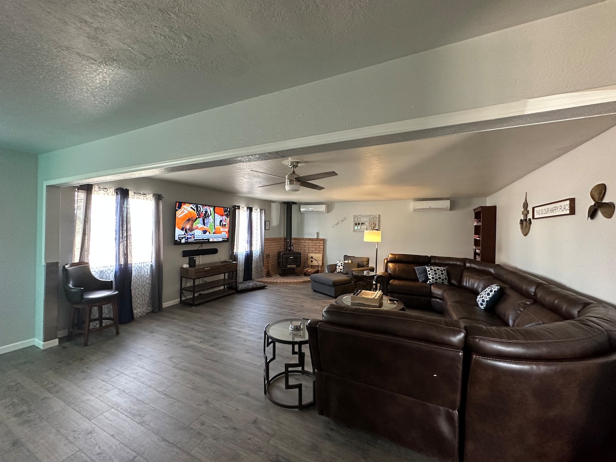A fun and quirky place to stay. Two bedroom one bath refurbished 1970's trailer close to Elephant Butte Lake and Sierra Del Rio golf course. Just minutes from historic Truth or Consequences NM where you can enjoy relaxing hot mineral baths, art shops and restaurants. Fully fenced and dog friendly with a covered patio, plenty of parking, cold AC and complimentary coffee, tea and bottled water. Enjoy the sunshine, endless blue sky and beautiful starry nights.