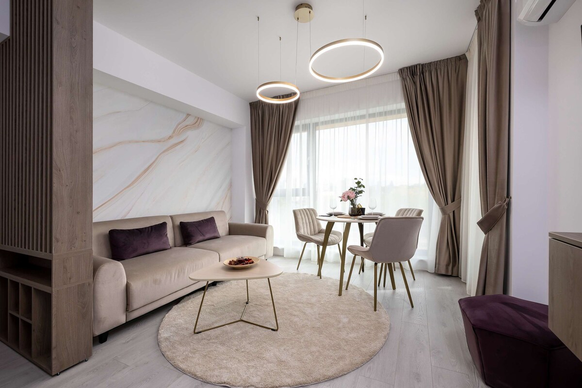 Descoperă confortul și rafinamentul acestui apartament de 2 camere, recent renovat, perfect pentru o vacanță de neuitat sau o calatorie de afaceri. Predomină nuanțele de verde smarald, creând un ambient relaxant și elegant. Apartamentul este complet mobilat și dotat cu tot necesarul pentru un sejur reusit - living cu canapea extensibilă, ideală pentru relaxare sau dormit - baie modernă cu duş, pentru clipe de răsfăț - bucătărie complet echipată, pregătită să îți satisfacă orice nevoie culinară.