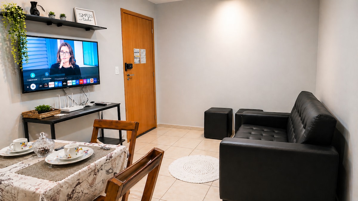 Descubra a experiência apartamento COZY funcional, o primeiro prédio Smart Living, um conceito moderno inteligente que une tecnologia, praticidade e bem estar. Cuidadosamente projetado com estética minimalista e atmosfera equilibrada, proporcionando sensação de conforto, organização e tranquilidade ideal tanto para descanso quanto para produtividade. Dispõe de cama queen size extremamente confortável, unindo design, funcionalidade e tecnologia, com inteligentes de check-in e check-out