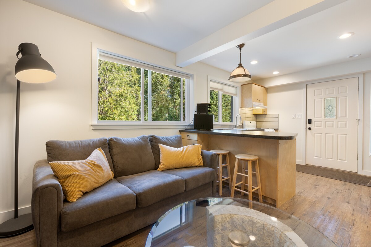 A charming retreat in the heart of the village. This newly updated two bedroom is a perfect spot for family and friends. Comes fully stocked to do your cooking at home or entertain in the huge outdoor space. Walk and enjoy the local shops and eateries. Take the kids down the street to the water park and pump track or ride from the house to the world renowned mountain bike trails. Mt. Washington is just a 25 minute drive away. Come and enjoy a relaxing vacation at the Dunsmuir House.