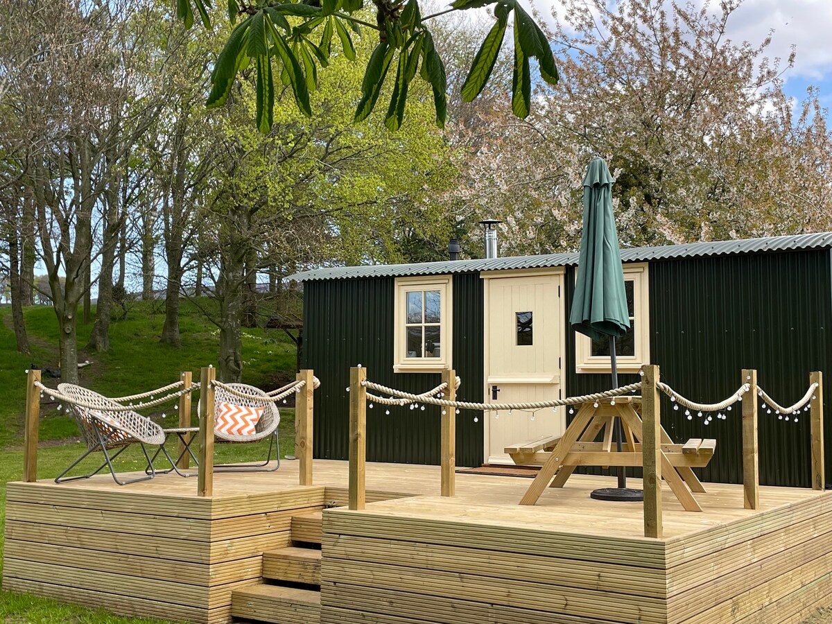 Hermoso, hecho a mano y totalmente revestido con estufa de leña y calentador de aceite. Espacio elegante, romántico y bien equipado con su propio baño. Se proporcionan sábanas y toallas. Situado en el campo más impresionante, totalmente virgen y escondido, en una zona de 3 acres con un pequeño lago y un bote (piensa en Swallows and Amazons en miniatura). 2 ciervos rojos residentes muy descarados cerca resultan populares entre todos los huéspedes. El valle del Edén y el Muro de Adriano están en la puerta, a 40 minutos en coche de North Lakes. ¡Hay excelentes pubs!