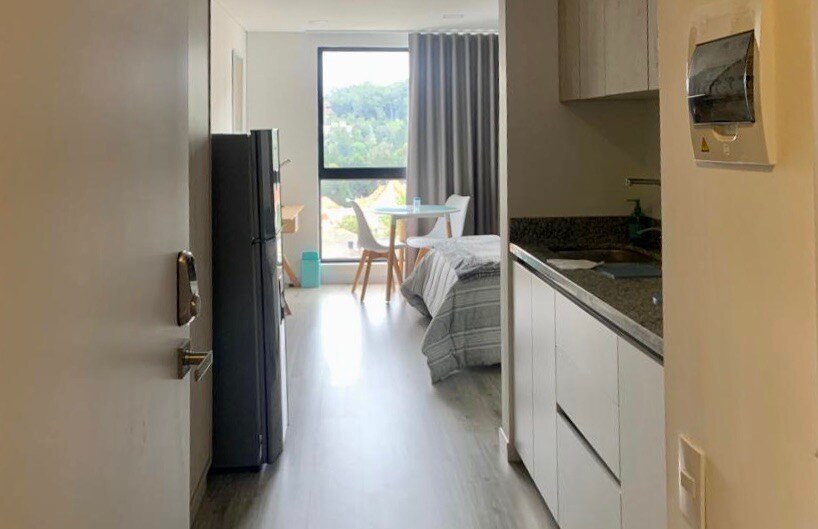 Located in the best area of Bogotá. ideal for business trips, leisure and small families that want to stay in a studio apartment. You will be in walking distance from three main shopping centers, top restaurants, gyms, supermarkets, bars, clubs, parks, coffe shops, hospitals and public trasnport stations in the city. This brand new studio apartament offers 24/7 doorman security a panoramic terrace on the building´s top floor, jacuzzi and front view to one of Bogota´s principal parks, el Virrey