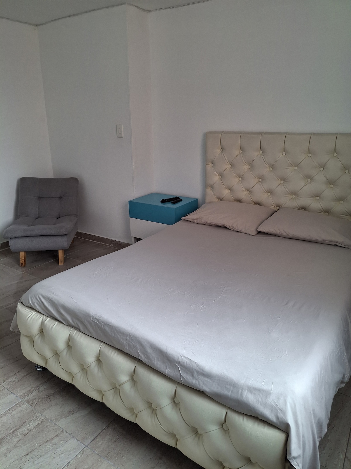 Apartamento moderno tipo estudio en ubicación estratégica de Bogotá, cerca de la Embajada de EE. UU., Corferias y Movistar Arena. Espacio amplio, luminoso y cómodo con cama doble, sofá, comedor para dos personas y cocina equipada con estufa y lavaplatos. Decoración minimalista y ambiente tranquilo, ideal para viajeros, trabajo o trámites en la ciudad.