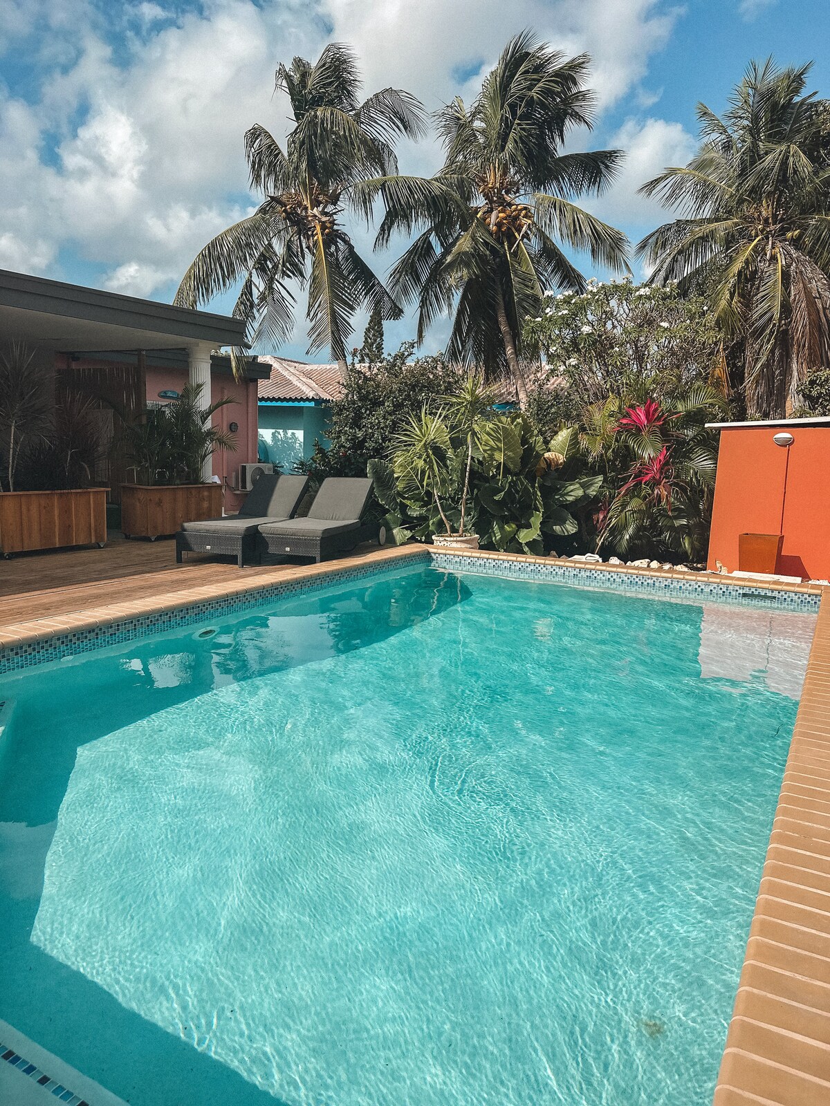 ¡En este exótico miniparaíso con 3 apartamentos únicos, todo gira en torno a ti! A solo 8 minutos de Mambo Beach y a 10 de Jan Thiel, esta joya te espera. Mi jardín tropical (comestible) con palmeras, flores de colores, loros, colibríes e iguanas es un verdadero punto de atracción. La barbacoa, la cocina al aire libre, el bar, la lavadora y el lavavajillas son todos tuyos para usar. Date un chapuzón refrescante en la piscina o relájate en una tumbona o en una hamaca bajo un platanero. ¡Bon Bini to dushi! ¡Bienvenido a Curaçao!