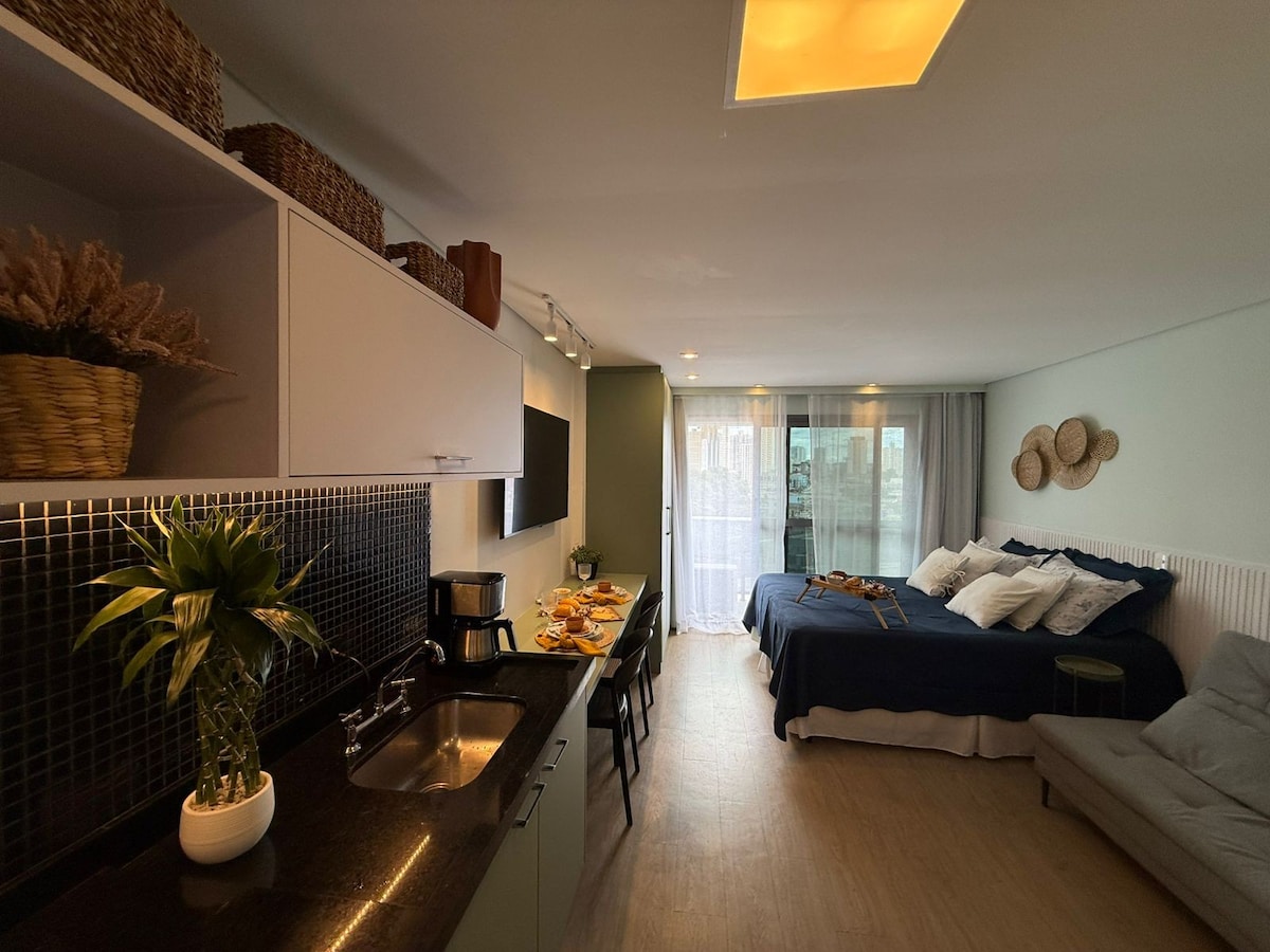 Studio de Alto Padrão com 26m² – Vista Incrível do 23º Andar - Piscina coberta e aquecida Preparamos cada cantinho com carinho para que sua estadia seja prática, confortável e sem nenhuma preocupação. O studio foi pensado para unir funcionalidade e elegância, com tudo o que você precisa para se sentir em casa. A decoração foi planejada nos mínimos detalhes para garantir bem-estar, praticidade e aquela sensação gostosa de “estou no lugar certo”. Aproveite cada instante e sinta-se em casa.
