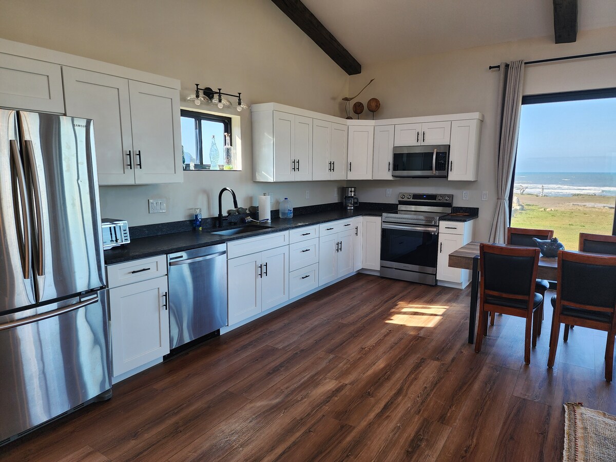 Casa de huéspedes bellamente renovada con acceso directo a la playa. Disfruta de magníficas vistas al mar, puestas de sol, observación de estrellas, avistamiento de ballenas a través de las enormes puertas correderas de cristal, desde la cubierta trasera o mientras te sumerges en la bañera de hidromasaje. Prueba suerte pescando perca oceánica o salmón en el cercano río Rogue. Cocina tu pesca en la cocina totalmente equipada o en la parrilla y come s'mores de postre mientras disfrutas de la fogata. Camina por kilómetros de playa aislada con vistas a Port Orford y Humbug Mountain.