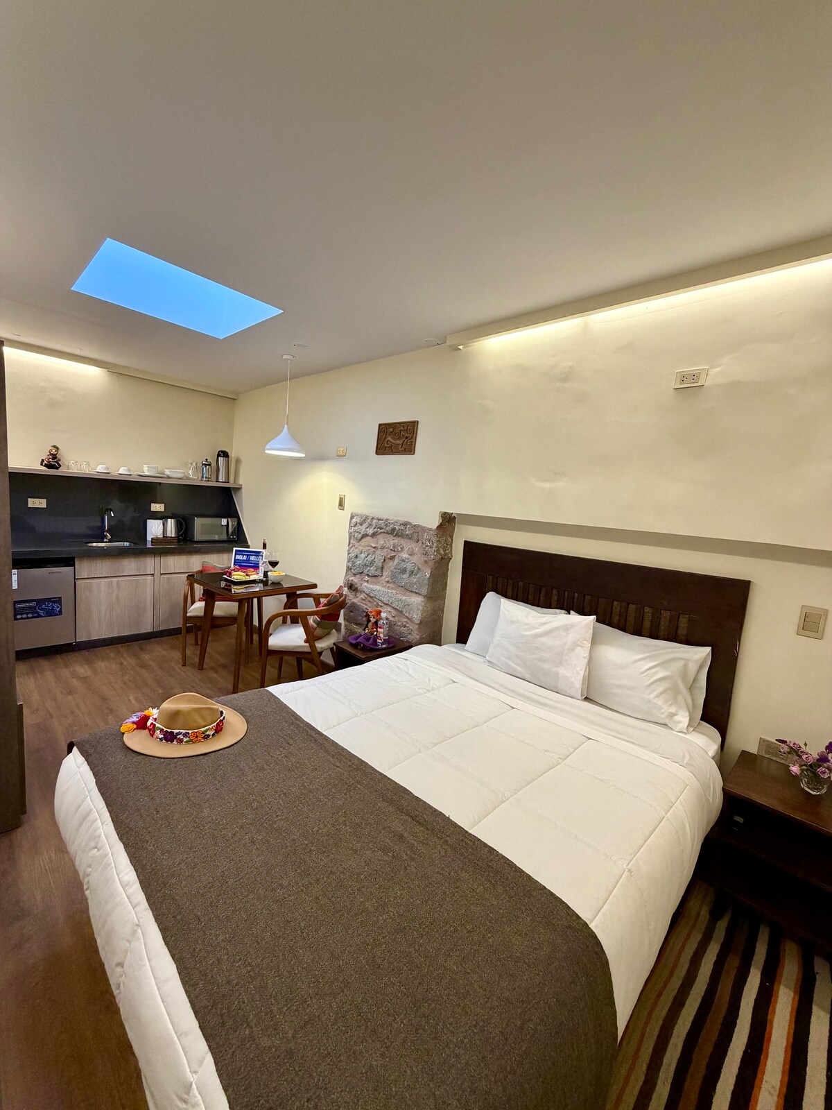 San Blas loft boutique mural andino y tragaluz.