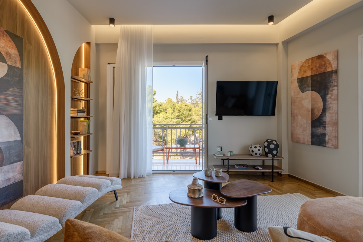 Un elegante apartamento de inspiración Bauhaus en el primer piso de un edificio histórico de 100 años. Renovado en 2023 y a un soplo de distancia de la colina de Lycabetus (a menos de 1 minuto a pie). Mi alojamiento es perfecto para parejas que desean encontrar paz y relajarse en un barrio residencial y quieren explorar Atenas. Equipado con internet Starlink (velocidad de más de 300 Mbps). A solo 10 minutos de las zonas de Kolonaki y Pagkrati y a poca distancia a pie de las plazas Exarchia y Syntagma. Respira y relájate en este alojamiento tranquilo y elegante.