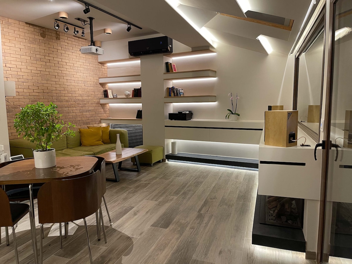 El Athens Loft es un loft único y elegante para un máximo de 4 huéspedes en el centro de Atenas con un galardonado interior, gimnasio privado, mesa de billar y cine en casa de 100 pulgadas en tu dormitorio con proyector LCD de alta definición. ¡Oficina en casa con impresora inalámbrica y fotocopiadora y conexión rápida a Internet!A un minuto de la estación central de metro y tren, a 9 minutos en metro del Partenón y a 45 minutos en tren del aeropuerto de Atenas. Televisión inteligente de 65 pulgadas,dos baños y una cocina totalmente equipada. ¡Reserva ahora y disfruta de la experiencia de 5 estrellas!