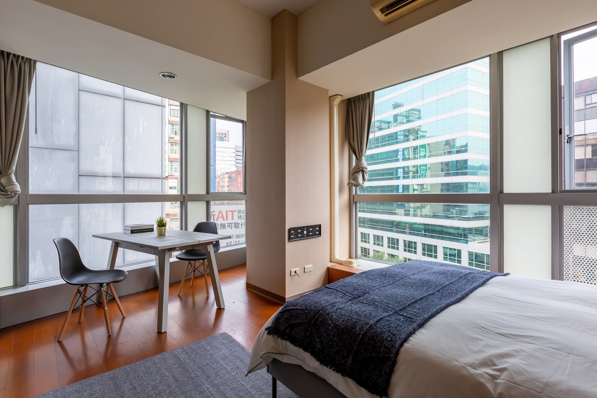 ¡Te damos la bienvenida a las estadías mensuales! ¡Envíame un mensaje para programar una visita! Moderno apartamento de 2 dormitorios en el distrito este de Taipéi: • Cama doble + cama individual • Cocina con isla • Televisor inteligente de 65 pulgadas • Aire acondicionado/calefacción • Piscina en la azotea, gimnasio, cafetería, bar • Servicio de estilo hotelero las 24 horas, 7 días a Totalmente amueblado, ¡solo trae tu maleta! No fumar, no mascotas. Máximo 3 huéspedes. Descuentos para estancias largas disponibles: MD para obtener más información.