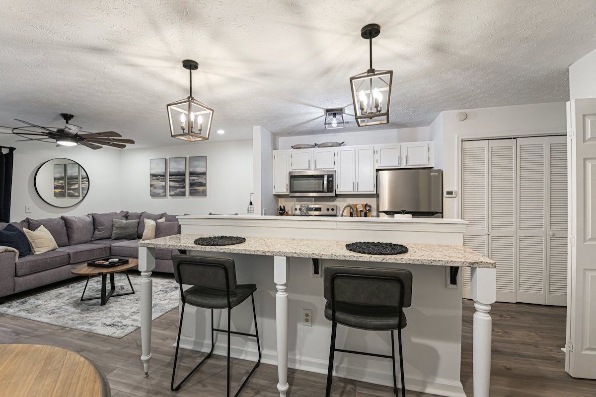 ¡Recientemente renovado con una nueva administración! (Septiembre de 2025) Ropa de cama fresca, nuevas decoraciones, una nueva cocina y baño: ¡lo tenemos todo! Tus elementos esenciales, desde un secador de pelo, sábanas suaves, patio, están todos aquí y en un solo nivel. Amplio aparcamiento para 2 coches, piscina comunitaria y acceso apto para mascotas con tarifa. Utiliza cómodamente el Tiger Transit de Auburn, el sistema de autobuses gratuito que te lleva entre el complejo y el campus. A 0,4 millas de la Facultad de Veterinaria A 4,3 km del campus de la Universidad de Auburn