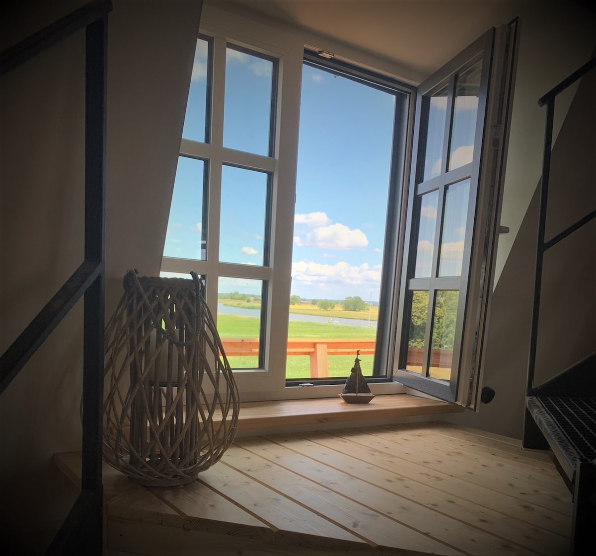 Picture this: morning coffee on your private rooftop terrace, geese flying in formation over the marshes below. Sunset cocktails with nothing but sky and water. Our 102-sqm apartment in a 1911 farmhouse sits in a real nature reserve — not a hotel, not a resort. Hamburg is 45 minutes away if you want the city. The Elbe and the marshes are right outside your door. If authenticity matters more to you than perfection — welcome.