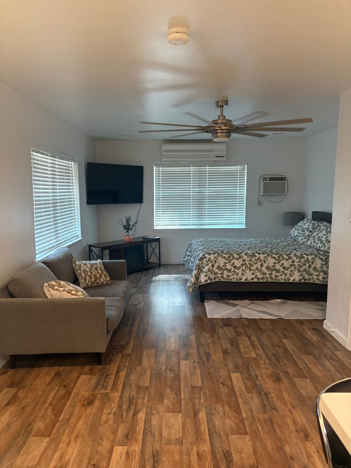 Ven a disfrutar de una estancia en nuestro apartamento tipo estudio de lujo. Construida en 2022, esta unidad privada adjunta fue diseñada desde cero para satisfacer tus muchas necesidades. ¿Viaje de negocios ajetreado? Tenemos una estación de trabajo con un escritorio de cedro construido a medida, tomas de corriente dedicadas y una ubicación céntrica a solo 15 minutos del aeropuerto. ¿Escapada romántica? La cómoda cama tamaño queen, la cocina y las duchas dobles significan que no tendrás que salir si no quieres. La cortina de privacidad también se puede correr para que uno de los miembros de la pareja pueda dormir.