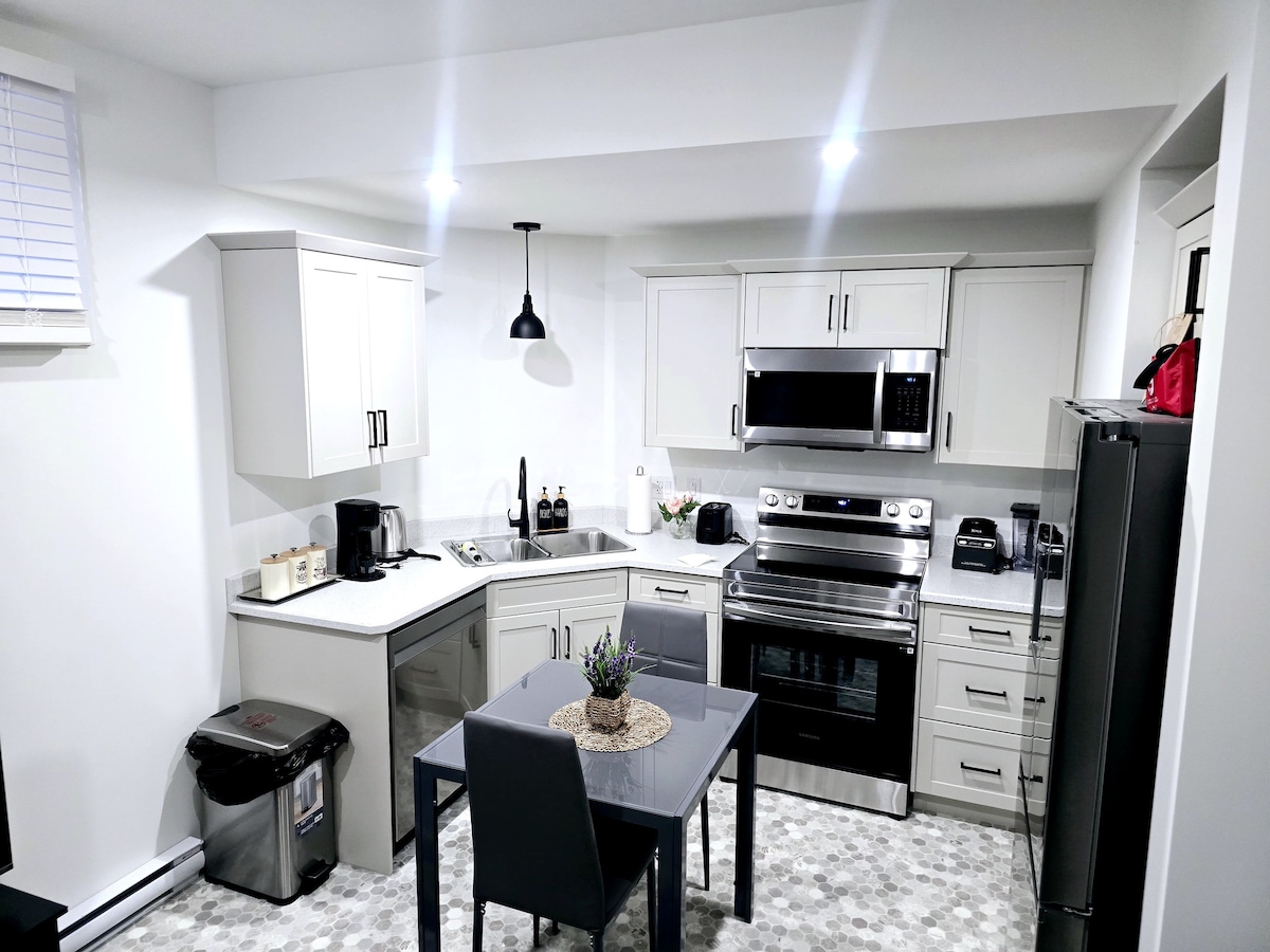 Bienvenido a nuestra encantadora suite en el sótano, perfecta para viajeros, parejas o profesionales. Disfruta de una entrada privada, un dormitorio acogedor, un baño completo, una sala de estar amueblada y una cocina totalmente equipada para tu comodidad. La lavandería con lavadora y secadora añade una comodidad adicional. Ubicado a solo 5 minutos del aeropuerto de la ciudad, este espacio ofrece comodidad, privacidad y fácil acceso a las atracciones locales. Reserva tu estancia hoy mismo para disfrutar de un retiro tranquilo y cómodo. ¡Estamos deseando recibirte!