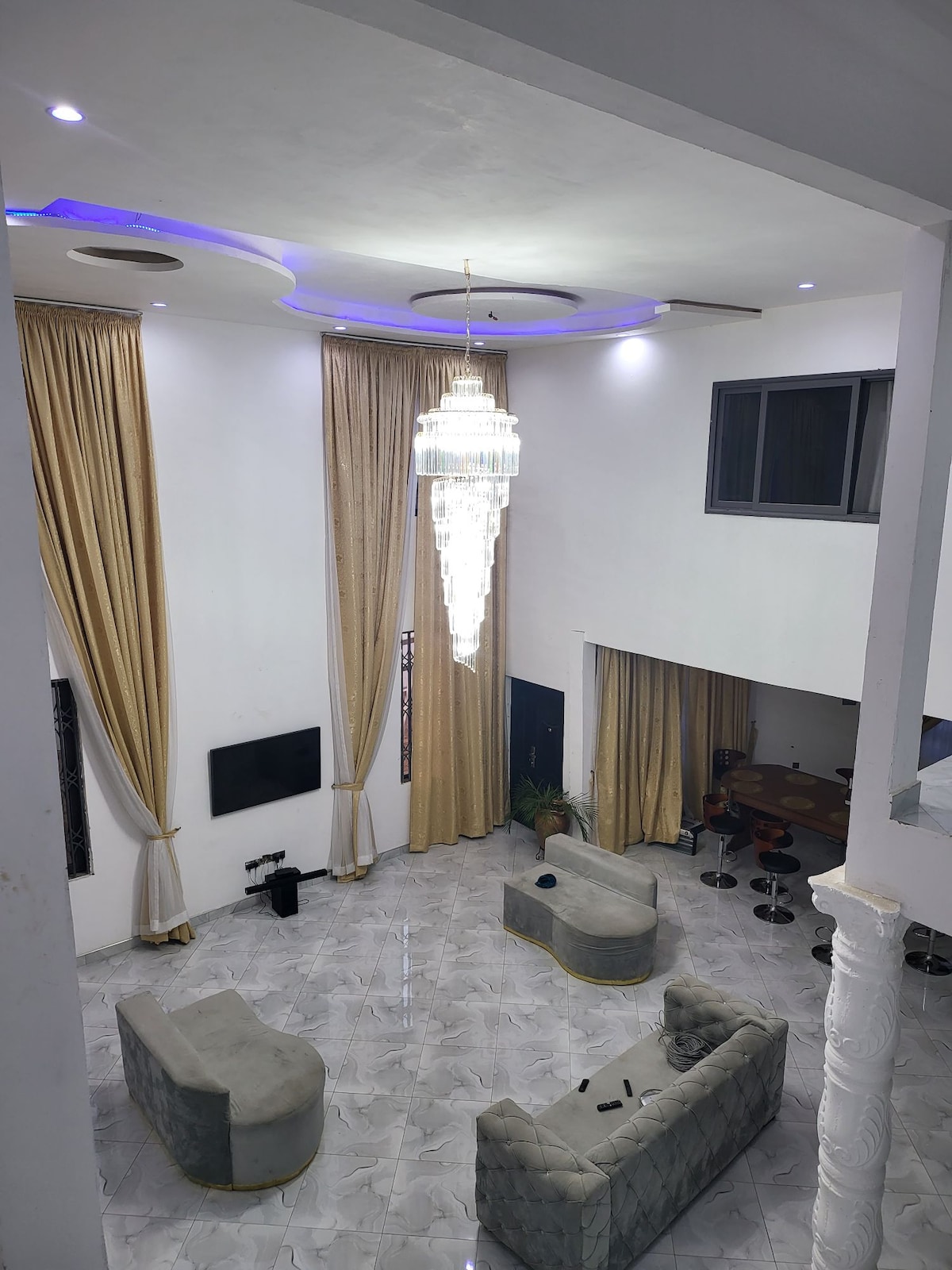 El Borkai ofrece 6 hermosos baños con 1 Master Suites. Esta Villa es ideal para reuniones corporativas, familiares y ocasiones especiales. Con un coste adicional, los clientes pueden tener acceso a nuestro chef interno, coche, acceso a internet y comestibles. Nuestro diseño de planta abierta ofrece una sala de estar luminosa bajo una lámpara de araña de cristal que conduce al comedor de 10 estaciones y a una moderna cocina totalmente amueblada. Los clientes pueden disfrutar de un espacio al aire libre cerrado en una pared eléctrica vallada de 12 pies de altura.