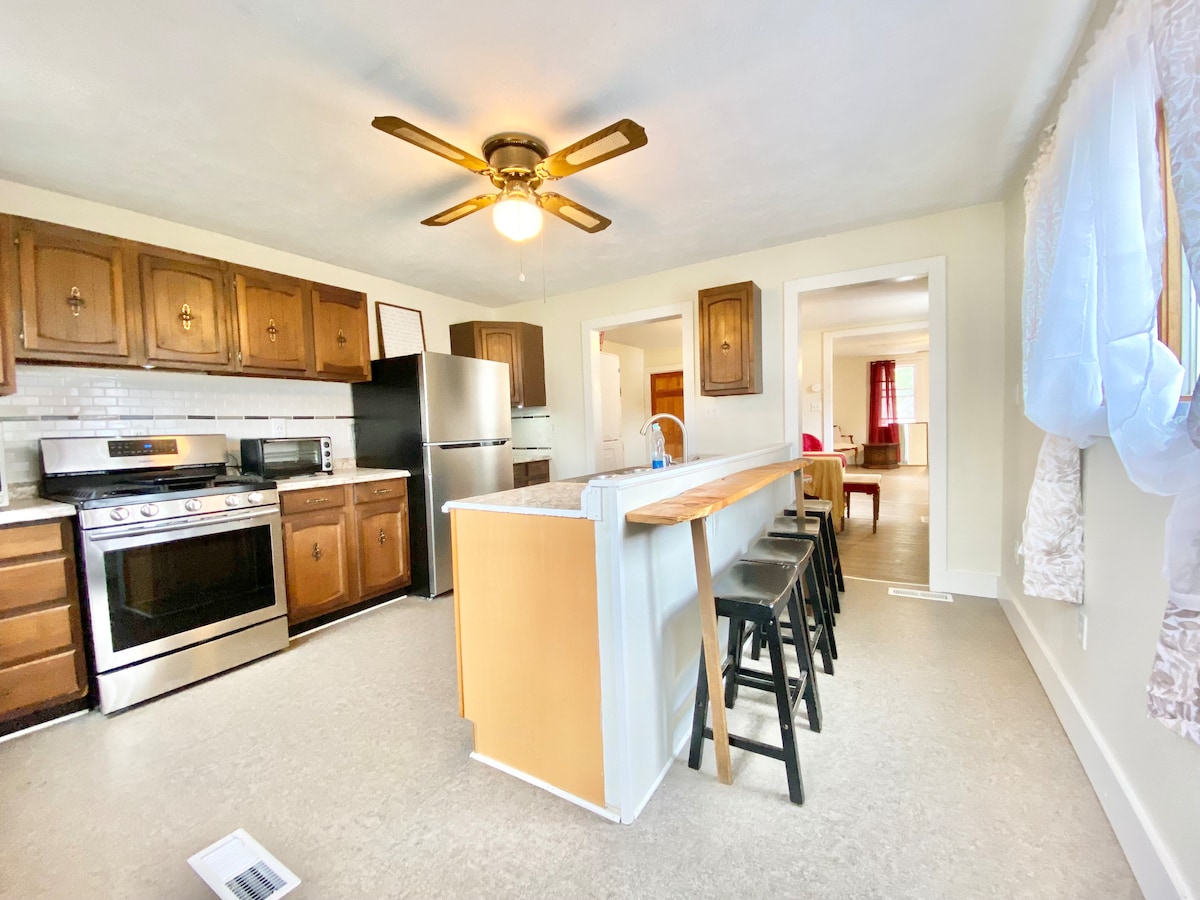 Relájate en esta granja personalizada de 3 dormitorios y 2 baños junto a Catawissa Creek para un máximo de 9 huéspedes. Siéntate en el columpio de troncos extra ancho que se balancea desde el hermoso roble centenario o siéntate en el patio y disfruta de los sonidos circundantes de los pájaros, grillos y cigarras. Tal vez disfrutes de una fogata nocturna en el patio trasero equipado con mucha leña y asientos reciclados creativos. Estamos cerca de Knoebels, a solo 6,7 millas en coche. Alquila The Magnolia al lado si necesitas más espacio.