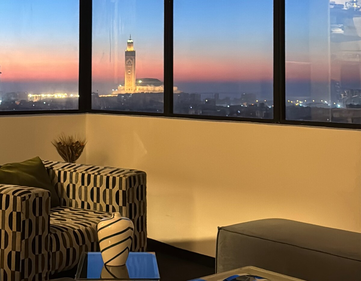 Penthouse Art Déco avec terrasses & vue Hassan II