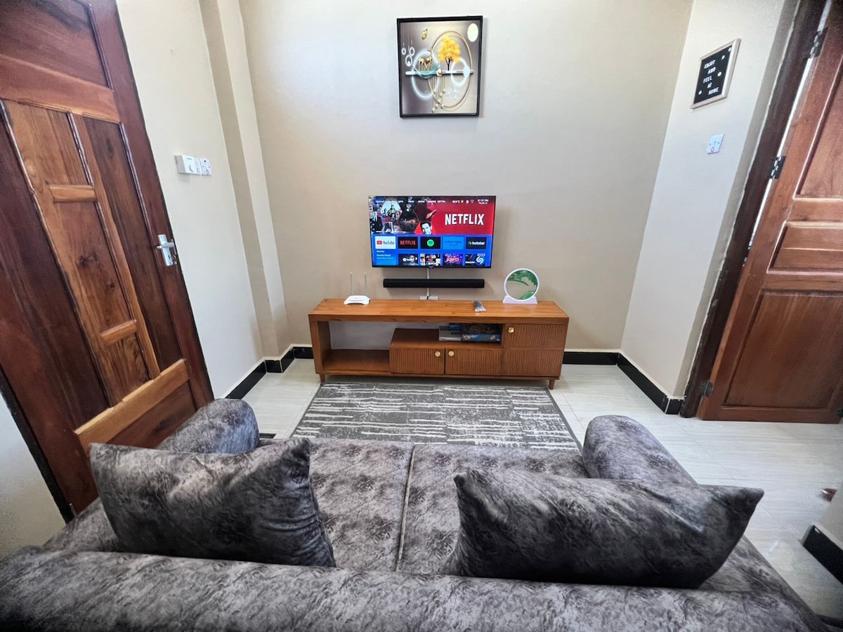 Este es un apartamento de 1 dormitorio con un diseño de concepto de cocina abierta y sala de estar separada que ofrece la privacidad que tanto se necesita, especialmente para las parejas. El establecimiento se encuentra en una zona segura al alcance de muchos lugares esenciales de Dar, como Mlimani City, el centro de la ciudad y Masaki. La unidad está bien amueblado con comodidades modernas que incluyen lavadora, wifi fiable, TV por cable de 55 pulgadas, aire acondicionado y mucho más. Hay un aparcamiento seguro gratuito, así como un bonito paisaje de jardín en el exterior para relajarse.