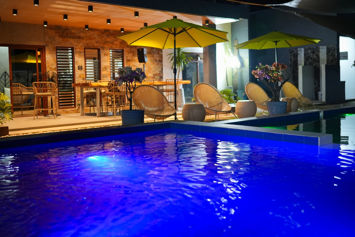 Disfruta: - Alojamientos de lujo junto a la piscina: Despiértate con unas vistas impresionantes de la piscina y disfruta de unas comodidades modernas. - Observación de estrellas junto a la piscina: experimenta la magia de una noche estrellada 🚶♀️El centro vacacional está a solo unos minutos del lago Sumlang y de otros lugares turísticos. ¡A 🚘10 minutos en coche de las ruinas de Cagsawa y a 30 minutos en coche de la ciudad de Legazpi! ⛰Impresionante vista del Mayon mientras toma café por la mañana☕