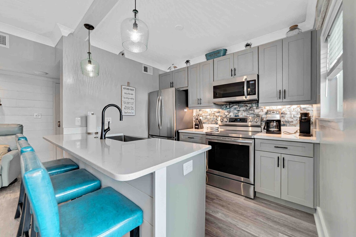 ¡Disfruta de tu estancia en la playa con nosotros! Nuestro condominio ofrece una cama tamaño queen en las literas primarias delgadas en el pasillo perfecto para niños pequeños y un sofá cama queen en la sala de estar. Su café de la mañana sabe mejor en el balcón con vistas a la playa. La cocina cuenta con un lavavajillas, una estufa, una cafetera normal de 12 tazas, algunas ollas y sartenes y un microondas. El complejo cuenta con muchas comodidades, incluyendo dos piscinas al aire libre, una piscina cubierta y bañera de hidromasaje, además de una sala de fitness, y canchas de baloncesto y tenis.