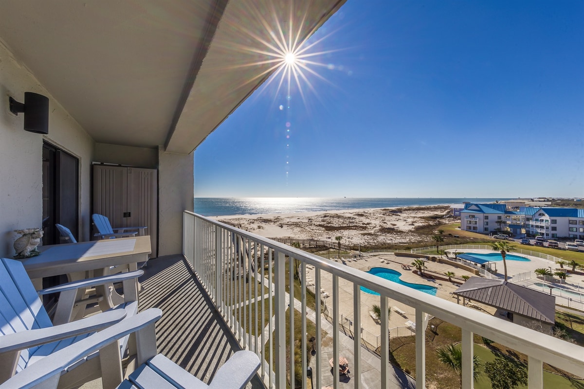 Despiértese con vistas panorámicas del golfo, desde el suelo hasta el techo, desde su dormitorio principal, la sala de estar y la cocina. ¡Disfrute de una estadía frente a la playa con decoración costera en uno de los complejos turísticos más lujosos de la zona! ¡Con una amplia playa, 4 piscinas, 3 restaurantes en las instalaciones más food trucks, un bar Tiki, parrillas, cancha de baloncesto, cancha de voleibol, cancha de tenis, cancha de pickleball, área de juegos para niños, spa y cafetería! ¡Nunca tendrá que salir del complejo turístico! Ubicado en la prístina y tranquila zona de Fort Morgan, está a solo 15 minutos de las zonas turísticas más concurridas.