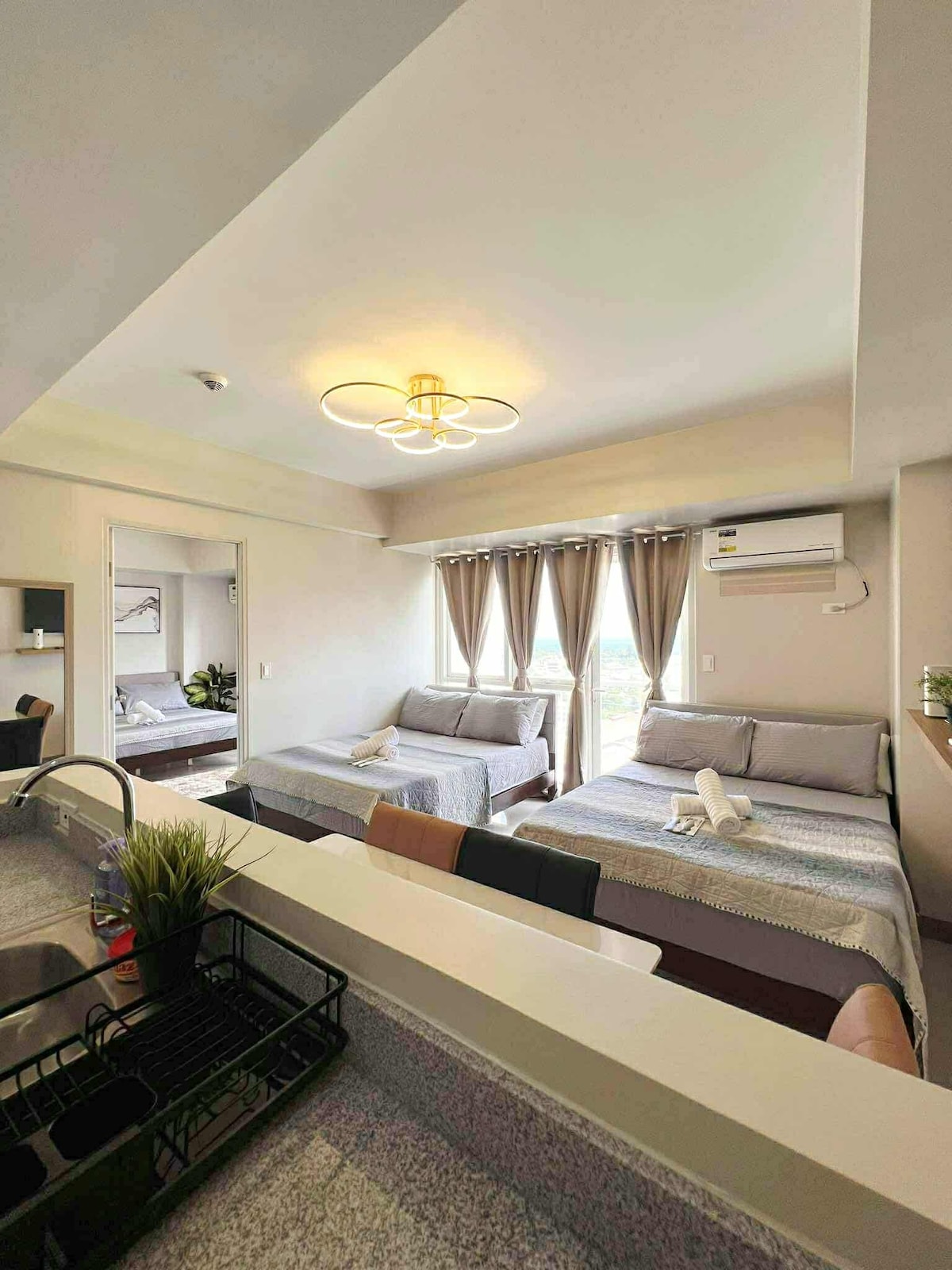 Apartamento moderno cerca del aeropuerto de Davao. Te damos la bienvenida a tu hogar lejos de casa en la ciudad de Davao. Este moderno condominio ofrece la mezcla de comodidad y estilo. Ubicado a solo 8 minutos del aeropuerto de Davao y a poca distancia a pie de Sasa Wharf, a 1 viaje de Azuela Cove, SM Lanang, es el lugar ideal para viajeros de negocios o familias que buscan experimentar lo mejor de la ciudad. ¿Viajas con familiares o amigos? Tenemos otra unidad de estudio justo al lado. Echa un vistazo aquí: airbnb.com/h/wanderershome
