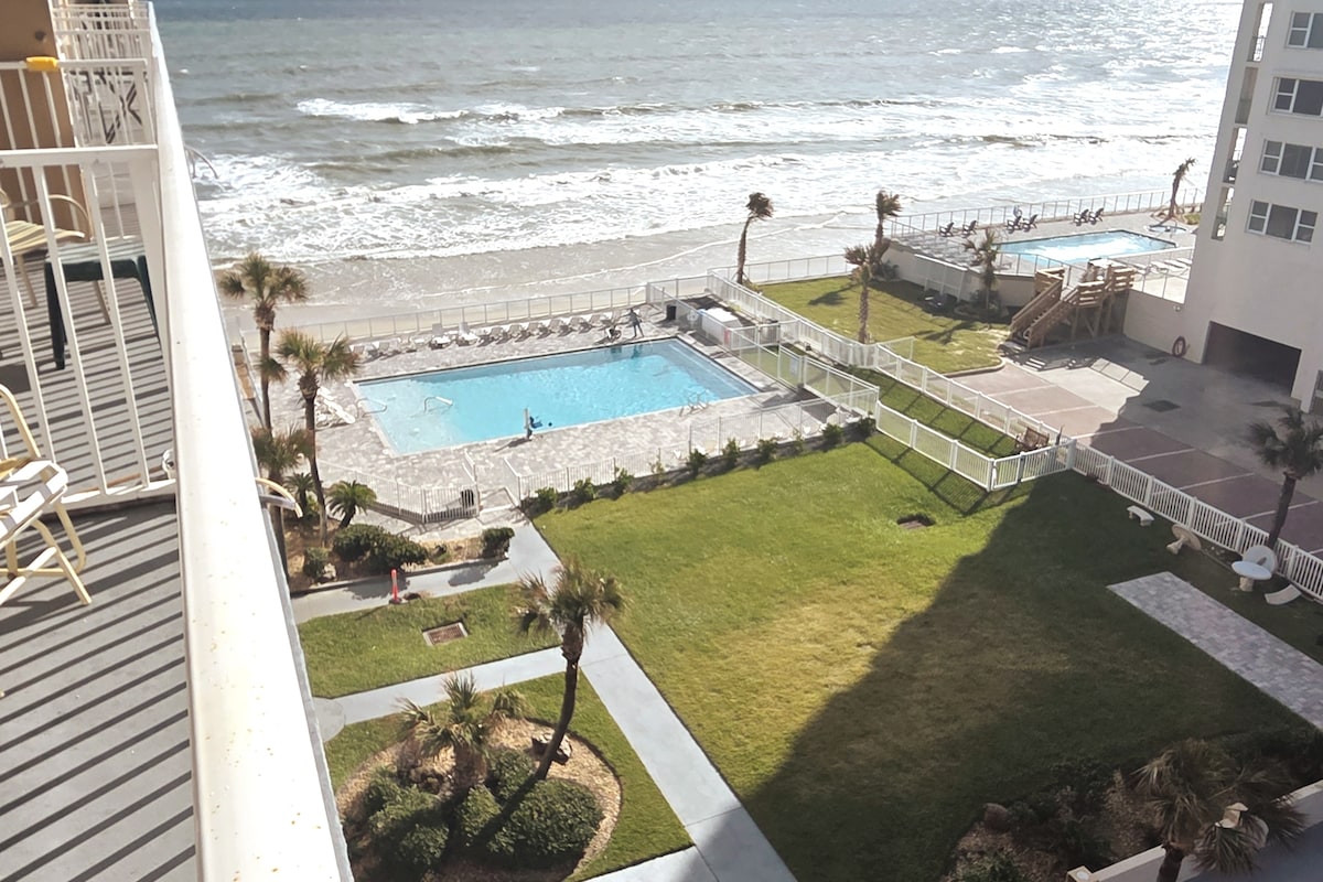 ¡Te damos la bienvenida a tu escapada junto a la playa! Este apartamento de la planta superior, bellamente remodelado, ofrece impresionantes vistas al mar, una decoración moderna y todas las comodidades del hogar. Ubicada en Daytona Beach Shores, esta unidad de 2 dormitorios y 2 baños cuenta con una cocina actualizada, baños y un balcón privado perfecto para disfrutar de las vistas al mar. Disfruta de acceso directo a la playa, una piscina comunitaria y acceso a pie a restaurantes y atracciones locales. Tanto si estás aquí para relajarte como para vivir una aventura, este apartamento es el punto de partida perfecto para tu estancia.