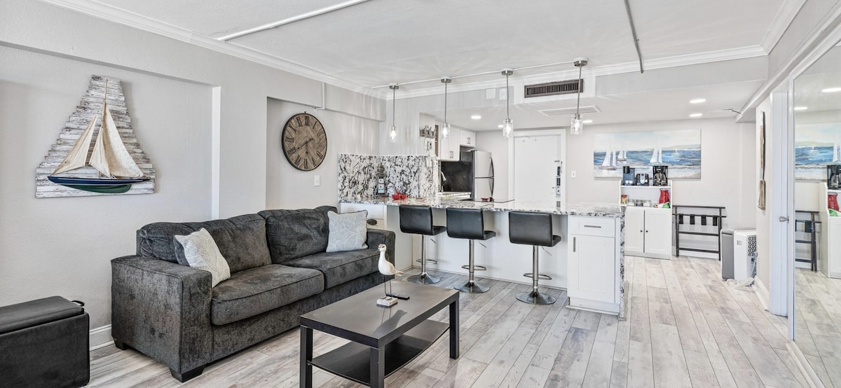 ¡Estudio🌊 ✨ totalmente renovado frente al mar! Alójate en el Harbour Beach Resort, que cuenta con una cama tamaño king y un sofá cama para un máximo de 4 personas. Disfruta de aparcamiento gratuito, wifi de alta velocidad, lavandería, piscina, bañera de hidromasaje, sala de juegos y gimnasio. 🏖️ 🧆A solo 9 minutos a pie del centro de Broadway y de los mejores restaurantes. ¡Perfecto para tu escapada a la playa! ¡Reserva ahora y disfruta de comodidad, estilo y unas vistas impresionantes al mar! 🌴☀️ ¡Reserva hoy tus vacaciones perfectas en Daytona Beach! 👙🏖️🌊