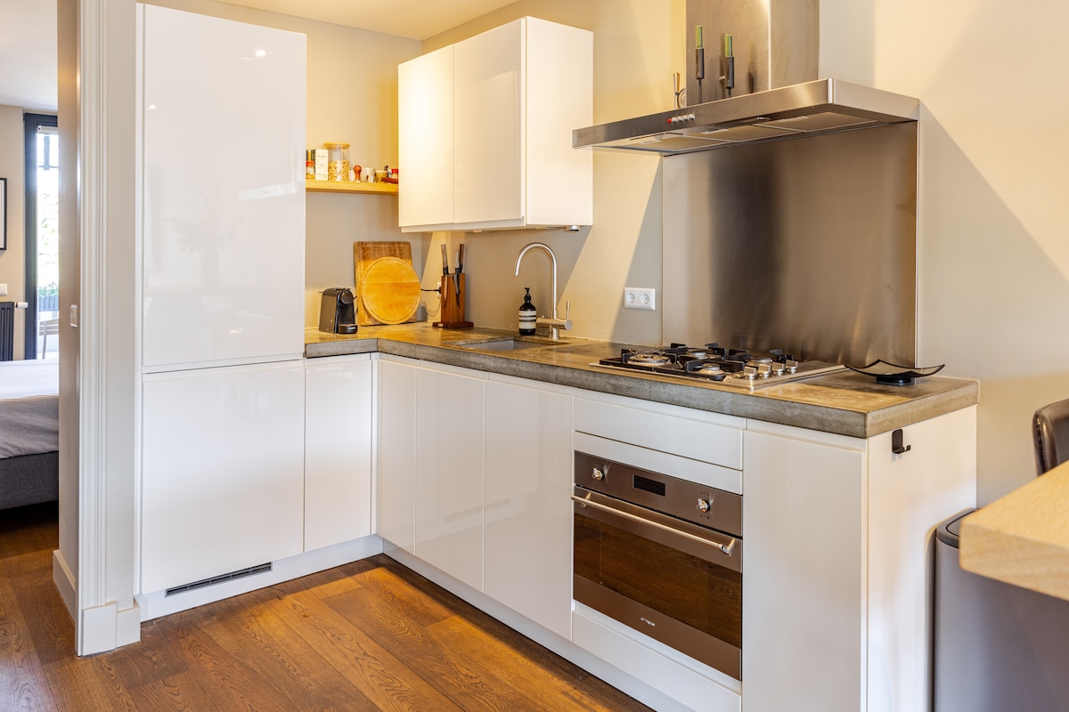 En pleno centro de Ámsterdam y muy adecuado para familias con niños. Después de una renovación de 14 meses, estamos listos para recibir huéspedes que aman el espacio y la calidad. Este es un apartamento de alta gama con dos dormitorios, adecuado para 4 personas. El apartamento es un lugar tranquilo escondido en medio del epicentro de Ámsterdam. El apartamento no incluye desayuno, pero hay un servicio de desayuno disponible en la tienda de delicatessen cercana o en las cafeterías de desayuno y el supermercado está a poca distancia a pie.
