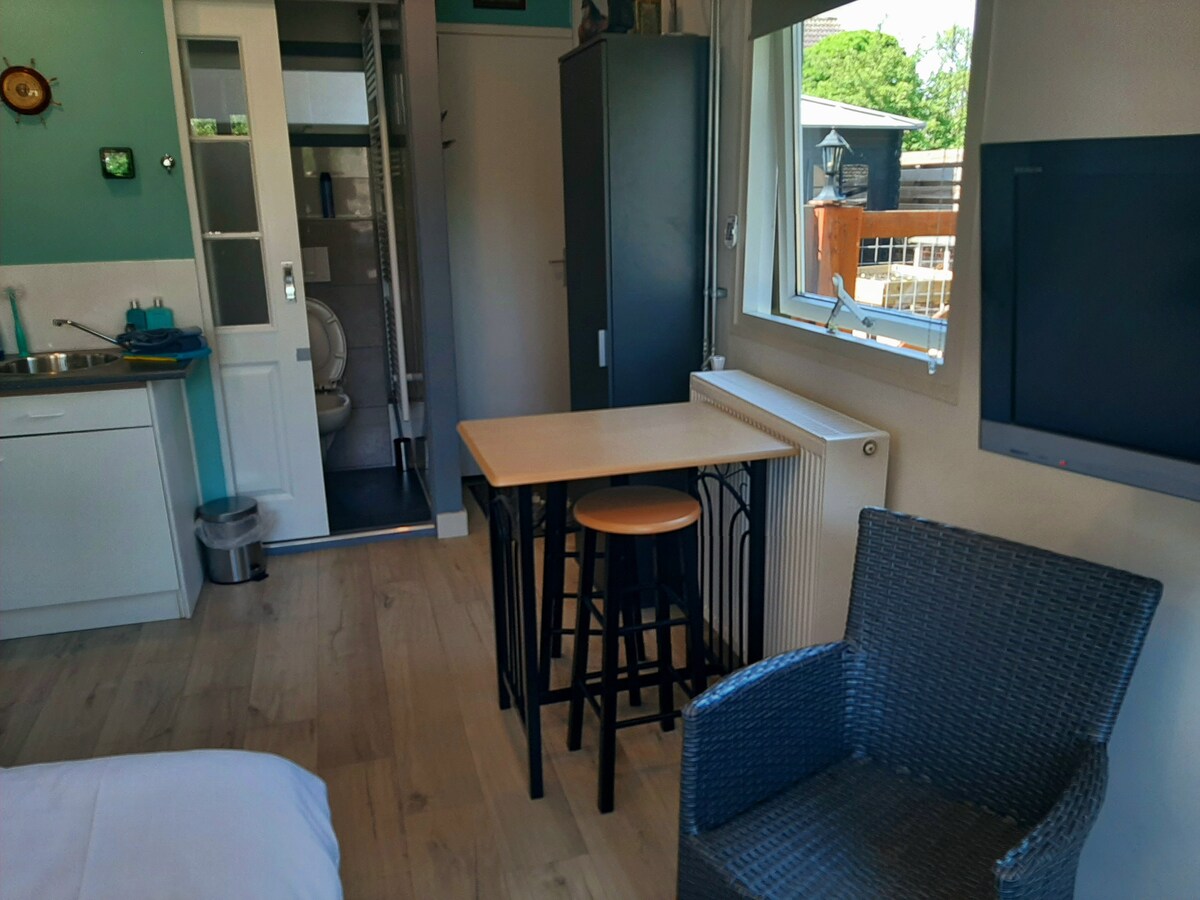 ¿Buscas más espacio que la habitación de hotel promedio? ¡Entonces este alojamiento es adecuado para ti! Nuestra zona de estar emana ambiente para descansar, en la ventana hay una mesa para 2 personas. En la acogedora cocina pequeña encontrarás todo lo que necesitas para calentar algo en el horno y hacer café o tomar una bebida fresca de la nevera. Los materiales naturales, los toques personales y la atención para reutilizar este lugar se sienten como un hogar lejos del hogar. Una espaciosa ducha/inodoro y una cómoda cama lo hacen completo