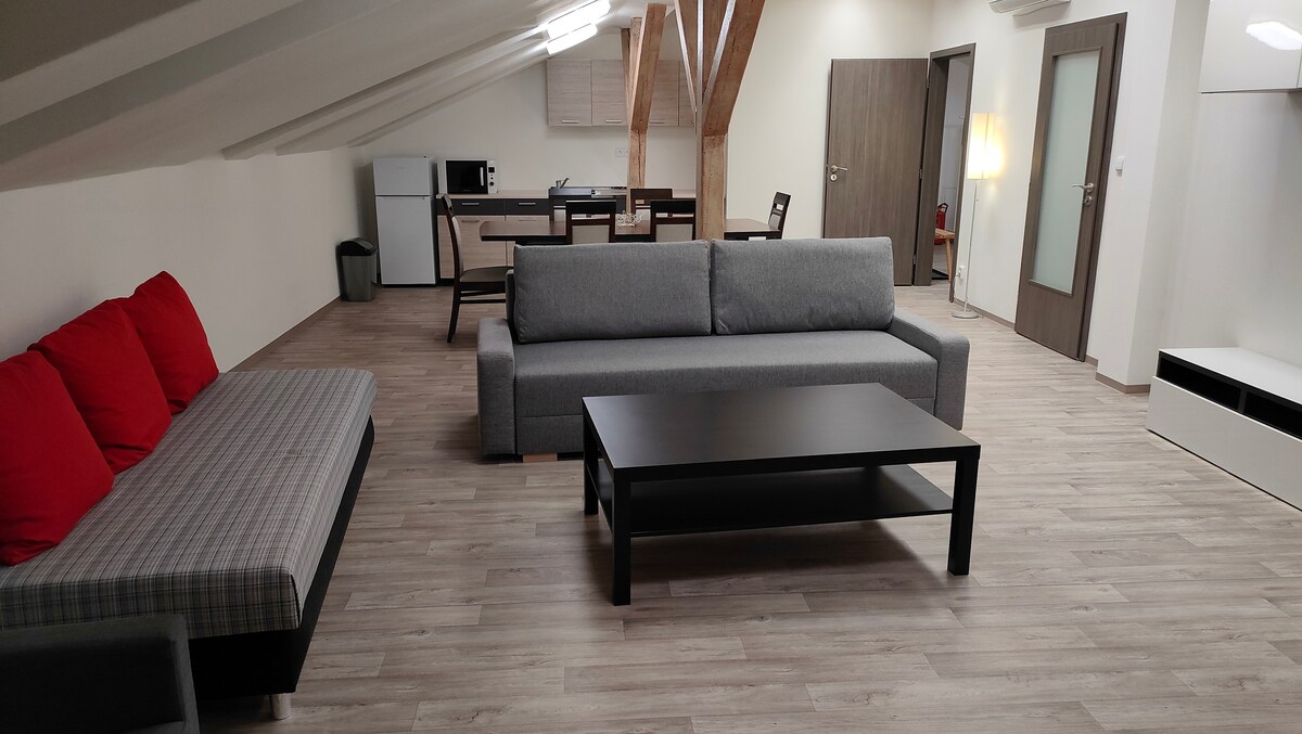 Un espacioso apartamento tipo loft de 3 dormitorios en un antiguo edificio industrial cuidadosamente renovado, estacionamiento fácil y seguro, ubicación perfecta en el centro de Děčín (barrio de la ciudad de Podmokly) cerca de muchos restaurantes, supermercados y centros comerciales y, al mismo tiempo, muy tranquilo. Una base de partida ideal para explorar los parques nacionales de Suiza bohemia y sajona.