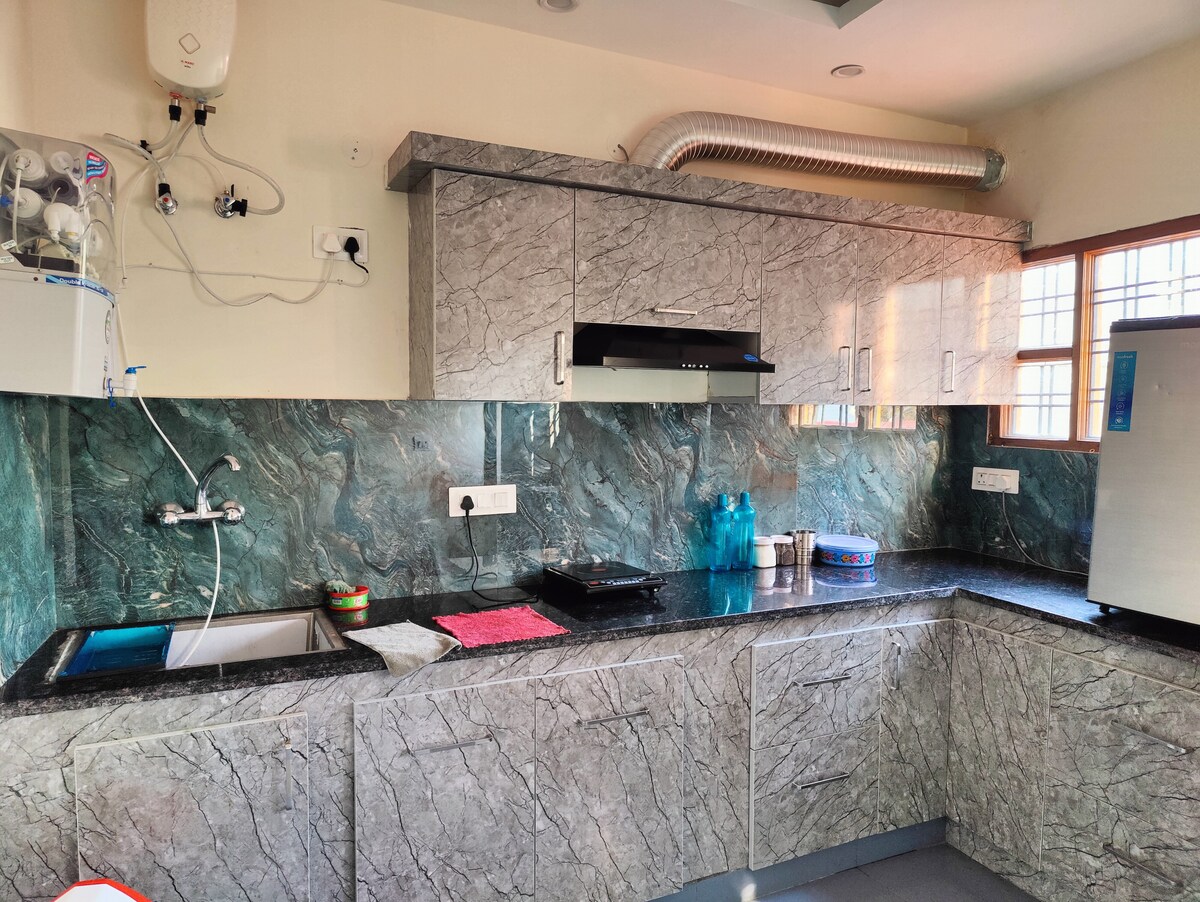 🏡SERENE MANSION HOMESTAY🌲 What you'd love about us- ✔Infant/Elder/Pet friendly ✔Calm nature wrapped neighbourhood amidst the poshest marketplace ✔Spotless clean interconnected bedrooms ✔Expansive living room ✔BBQ + Meals on demand ✔Plug-in EV charging ✔Fully equipped kitchen w/ all kitchenware & ready-to-cook groceries ✔Mountain view terrace +Lush lawns ✔Washing machine, gym equipment, RO & power backup ✔Netflix, PrimeVideo, Hotstar enabled Smart TV, 100Mbps WiFi, Xbox & board games