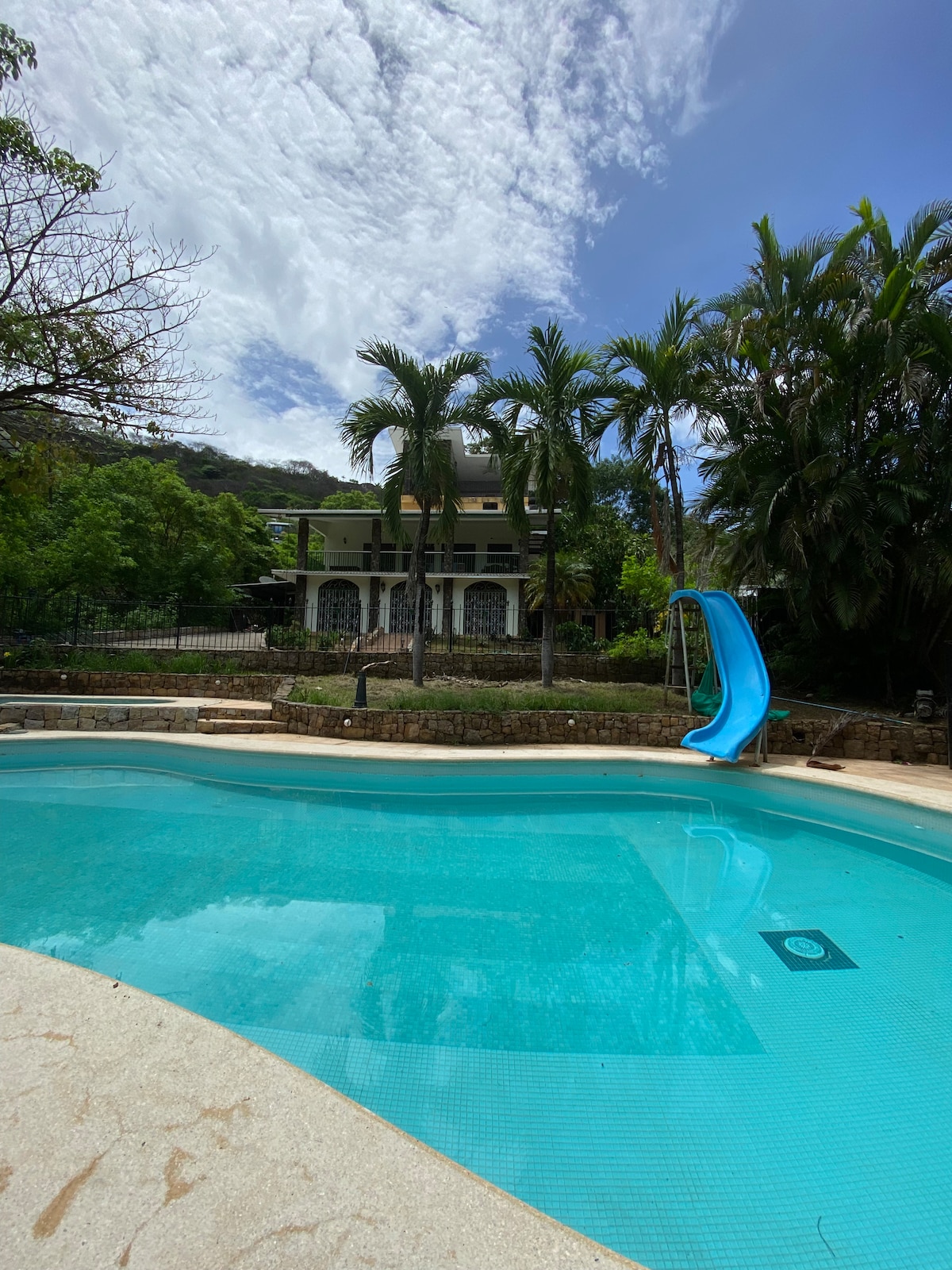 Located 30 minutes from Liberia Airport, this large, completely private vacation home spans three levels and offers generous indoor and outdoor living spaces, ideal for families and groups. The house is close to the beach (3 minutes' walk) and features a large private pool with a slide, a shaded rancho with a bar, a relaxation area, and a tropical garden. High-speed Wi-Fi (200 Mbps) is available throughout the property. 😎🌴