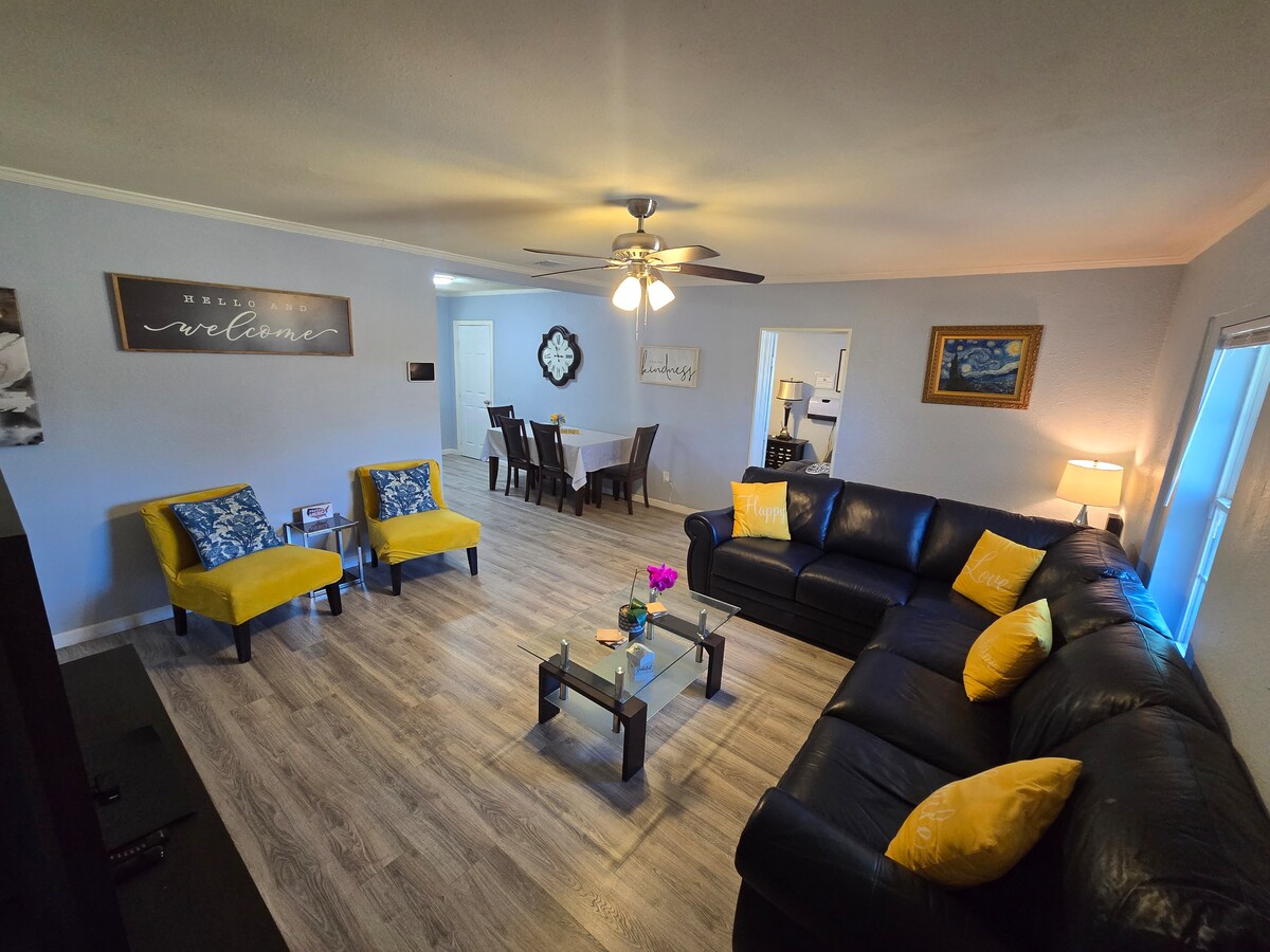 Escape to serenity in this tranquil home, ideally situated near Lake Texoma, Downtown Denison, and Choctaw Casino. This inviting 3-bedroom residence offers optimal convenience with its proximity to all local attractions. Unwind with water activities at Lake Texoma, explore downtown Denison's wineries and dining, and enjoy thrilling gambling and dining at the nearby casino. Finally, sink into the comfort of a leather sectional or a luxurious Tempurpedic mattress for a rejuvenating night's sleep.