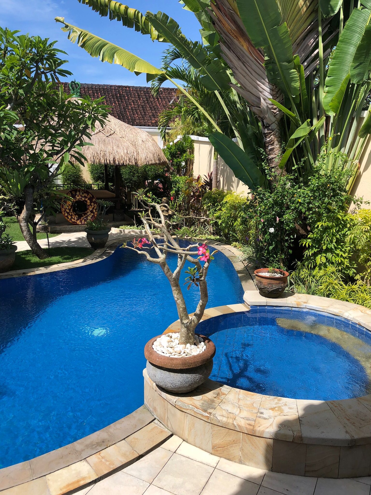 Nuestro acogedor bungalow es todo sobre - que sean nuestros huéspedes preferidos - calidad (todo es nuevo y funciona) - Internet súper WiFi con conexión de fibra óptica y router privado. - Gran piscina cristalina de 15 m de largo. - cerca de la playa - privacidad total - deliciosa ducha al aire libre - Cocina abierta bien equipada - El garaje para coches y el aparcamiento para motos son seguros y están dentro de la puerta principal, y se comparten con nosotros. - La privacidad total de tu villa comienza después de cruzar la zona de aparcamiento seguro.