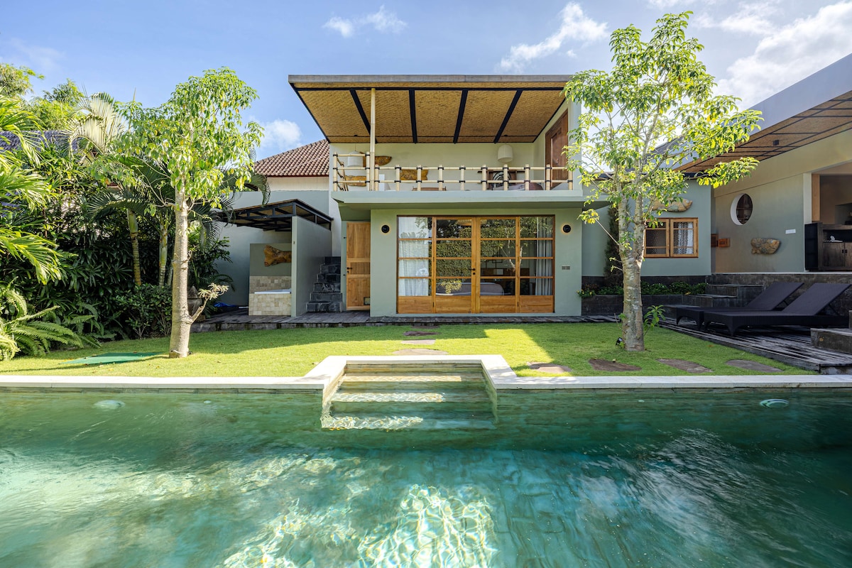 Angga Sari Villa promete una experiencia verdaderamente rejuvenecedora para los viajeros que buscan una estancia moderna, relajada y cómoda. Te sentirás como en casa desde el momento en que llegues aquí❤️ * 2 dormitorios y 2 baños con artículos de tocador * Cocina totalmente equipada. * Zona de descanso al aire libre para disfrutar del cálido clima balinés * Piscina privada con una superficie de 3,5x6 y una tumbona mientras disfrutas de la auténtica cocina indonesia * Wifi de 100 mbps y TV inteligente