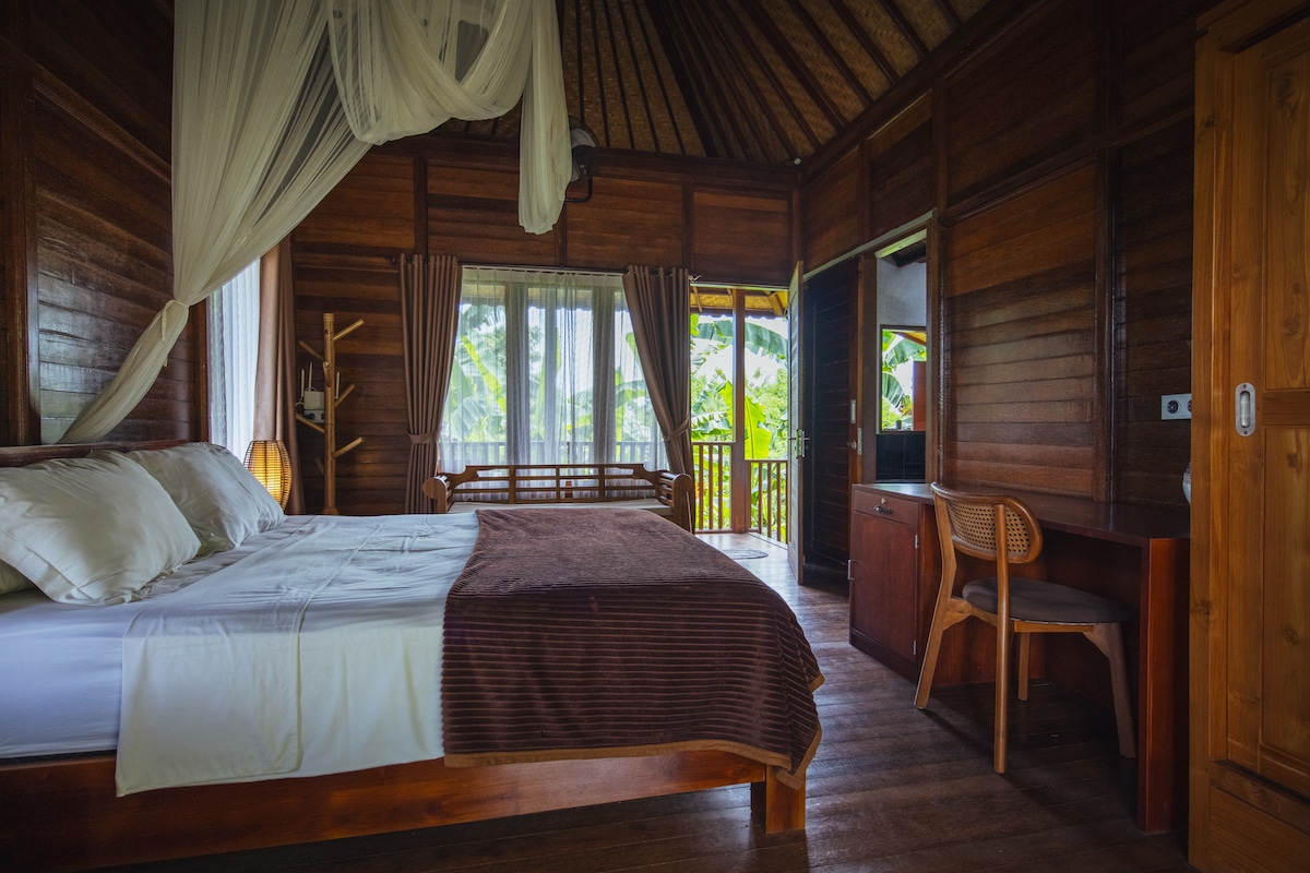 ¿Viajas con un grupo o una familia? Podemos alojar hasta 14 huéspedes. Si buscas un lugar lejos del ajetreo y el bullicio, pero cerca de Ubud, ¡nuestra villa es para ti! La cascada de Tegenungan está a solo 10 minutos, el parque de mariposas Kemenuh a solo 5 minutos y el mercado de Ubud está a unos 20 minutos. La casa del estadio Bali United Kapten I Wayan Dipta a solo 15 minutos. Proporciona: -Biscina privada - Wifi gratuito. - Baño privado con ducha de agua caliente. - Habitación con vistas a la piscina con aire acondicionado. - Propietario/personal amable y SERVICIAL