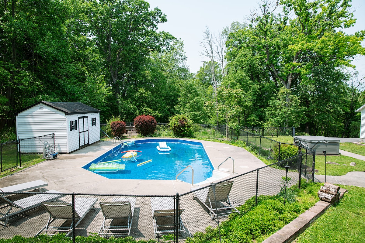 Disfrute de una casa increíble ubicada en un terreno de 7 acres, con todos los servicios que pueda imaginar, en un pueblo maravilloso a solo 90 minutos de cualquier punto de la ciudad de Nueva York. Cerca de las pistas de esquí (a 15 minutos de Mountain Creek o Mount Peter), senderismo, granjas, bodegas, cervecerías, parques de atracciones, un autocine y ¡mucho más! Puede optar por explorar la ciudad o quedarse en la casa y disfrutar de la piscina climatizada, el área de juegos o organizar una cena en nuestro amplio comedor. Número de permiso P26-0068