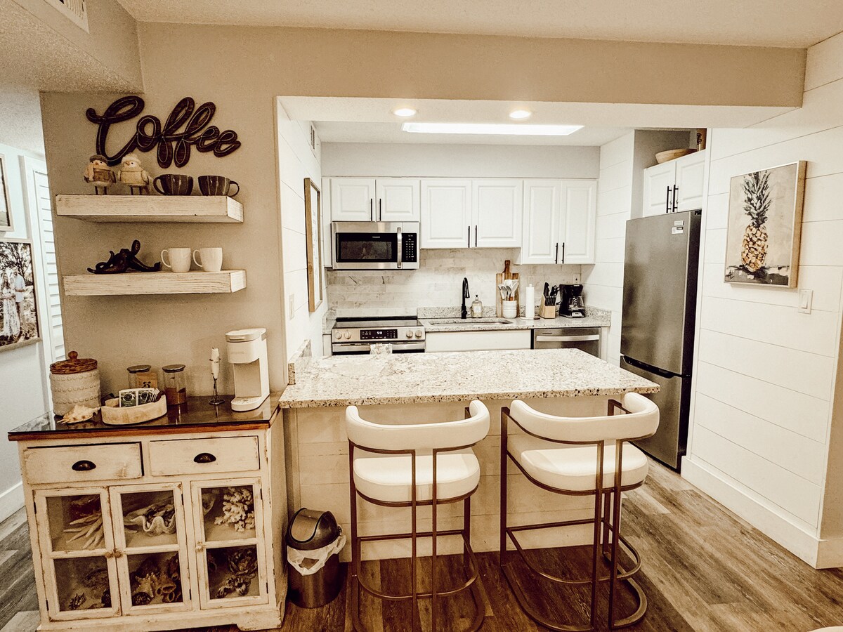 Arena blanca, agua de aguamarina, aire claro... Si buscas un lugar relajante y exclusivo justo en la playa, ¡esto es todo! Este condominio tiene 2 dormitorios, 2 baños y una amplia sala de estar. La cocina se actualizó recientemente con una encimera de granito única. Una zona de bar separada con una nevera de vinos ofrece un lugar perfecto para preparar tu mejor coctel de playa. La joya de la corona del condominio es su exquisito balcón completo con un bar y una vista inigualable del Golfo.